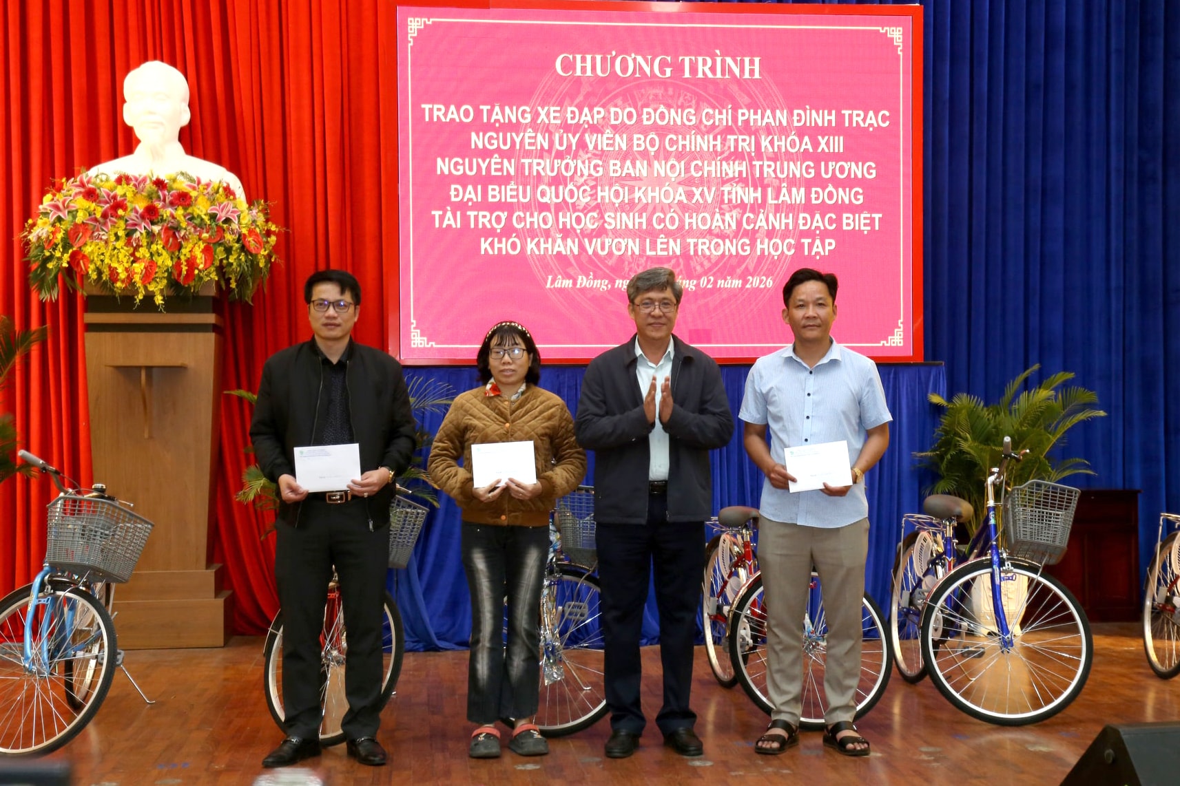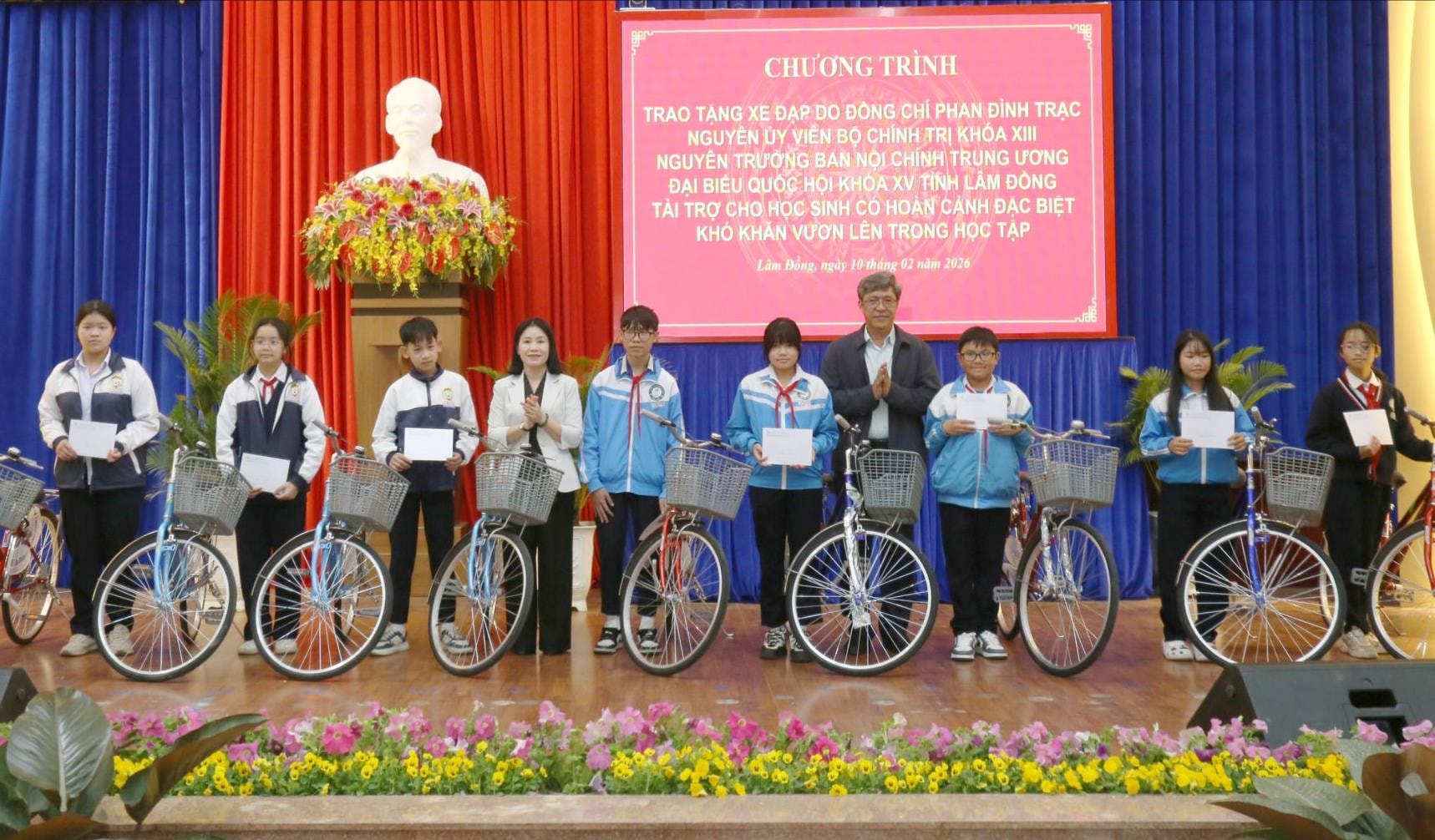 Chiều 10/2, tại phường Xuân Hương – Đà Lạt, Sở Giáo dục và Đào tạo tỉnh Lâm Đồng tổ chức chương trình trao xe đạp do đồng chí Phan Đình Trạc, Nguyên Ủy viên Bộ Chính trị khóa XIII, Nguyên Trưởng Ban Nội chính Trung ương, ĐBQH khóa XV tỉnh Lâm Đồng tài trợ cho học sinh có hoàn cảnh khó khăn vươn lên trong học tập.