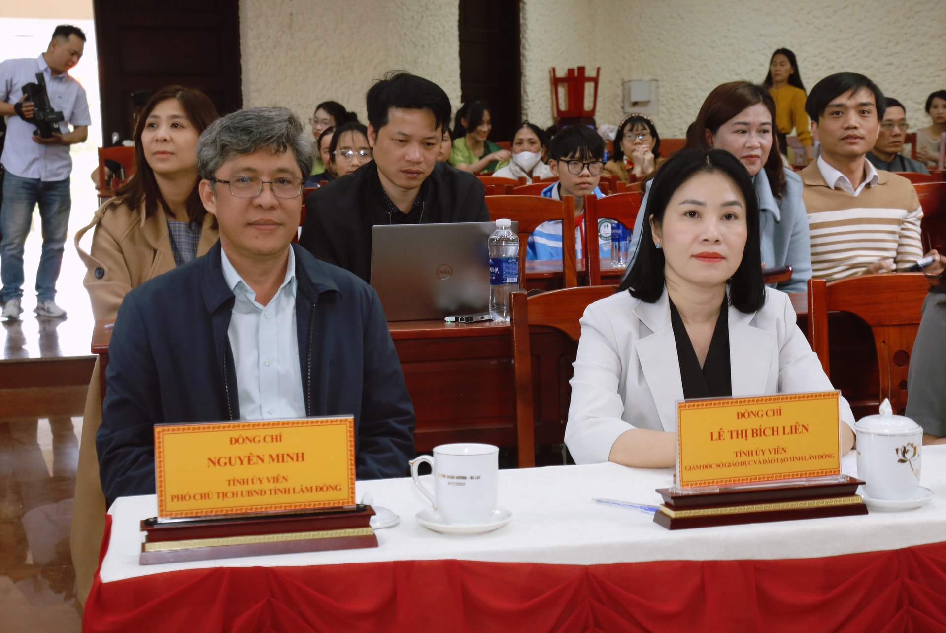Tham dự chương trình có các đồng chí: Nguyễn Minh, Tỉnh ủy viên, Phó Chủ tịch UBND tỉnh; Lê Thị Bích Liên, Tỉnh ủy viên, Giám đốc Sở Giáo dục và Đào tạo; Trịnh Thị Tú Anh, Đại biểu chuyên trách Đoàn ĐBQH tỉnh Lâm Đồng.