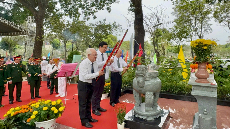 Các đại biểu thắp hương trước anh linh các liệt sĩ Biệt động Quân khu Sài Gòn-Gia Định.