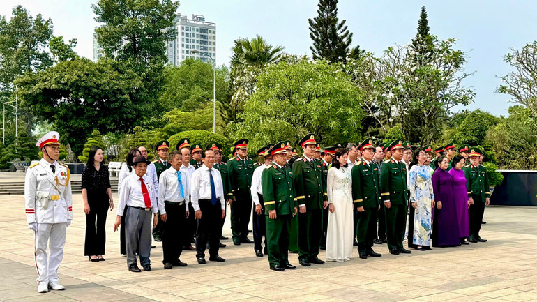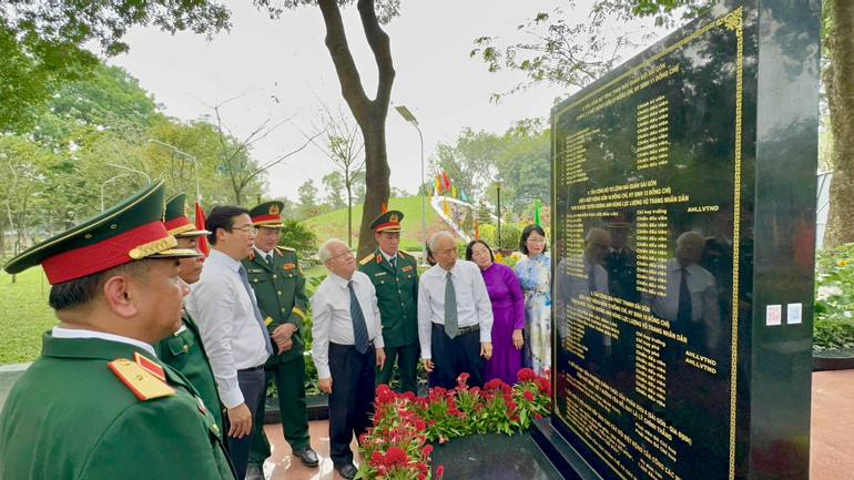 Các đại biểu tại Bia tưởng niệm cán bộ, chiến sĩ Biệt động Sài Gòn-Gia Định.