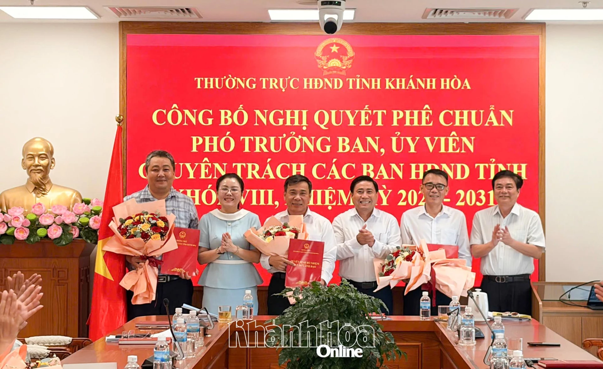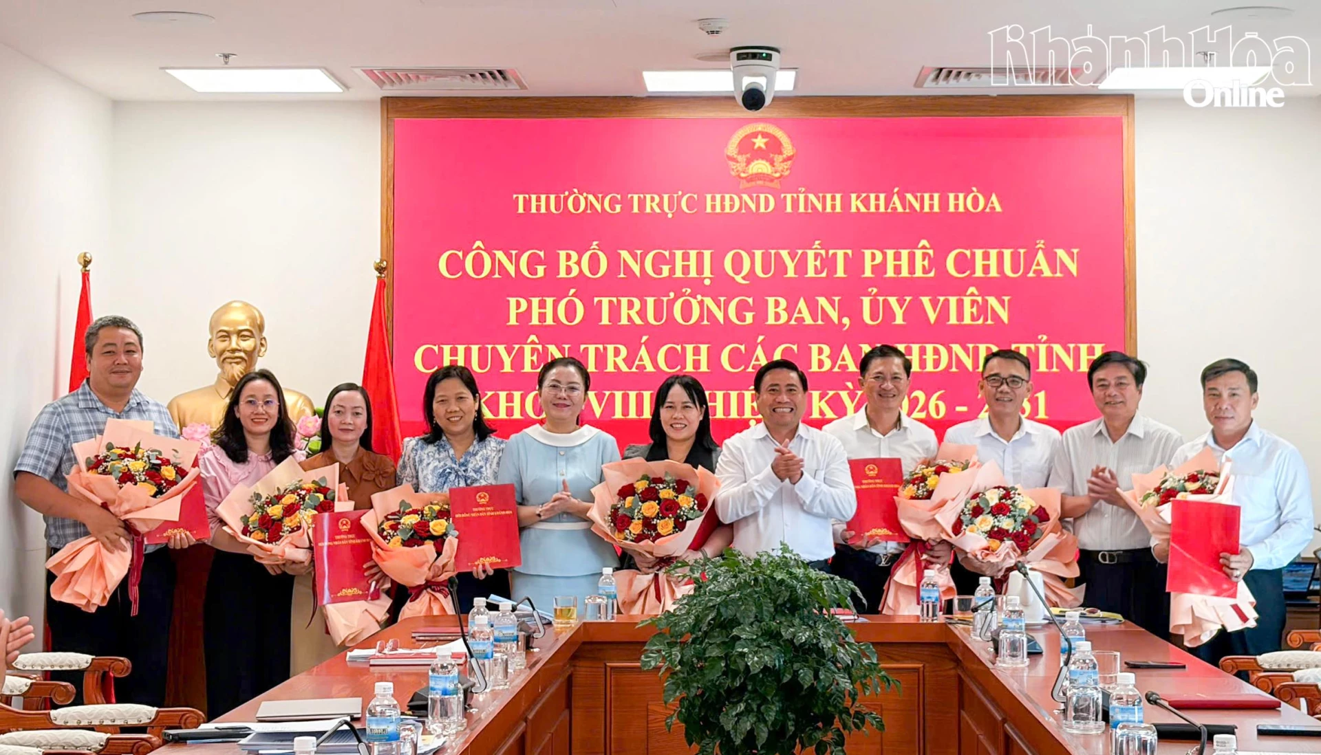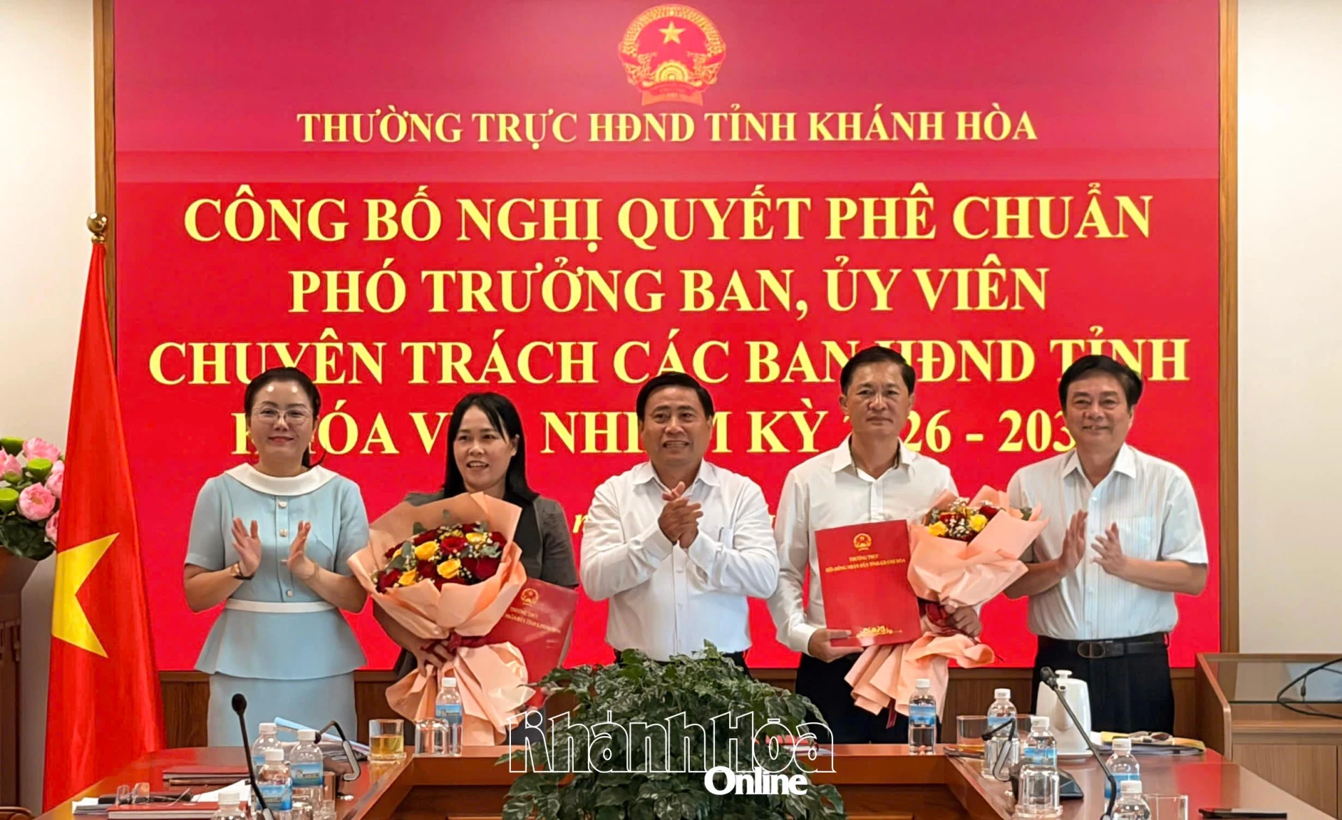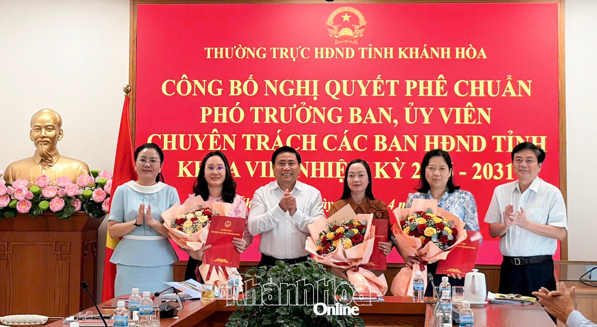 Chiều 14-4, các đồng chí: Lâm Đông - Phó Bí thư Tỉnh ủy, Chủ tịch HĐND tỉnh Khánh Hòa; Lữ Thanh Hải - Ủy viên Ban Thường vụ Tỉnh ủy, Phó Chủ tịch Thường trực HĐND tỉnh; Phạm Thị Xuân Trang - Phó Chủ tịch HĐND tỉnh dự hội nghị công bố và trao các nghị quyết của Thường trực HĐND tỉnh phê chuẩn số lượng và danh sách Phó Trưởng ban, Ủy viên hoạt động chuyên trách, Ủy viên hoạt động kiêm nhiệm của các ban HĐND tỉnh khóa VIII, nhiệm kỳ 2026 - 2031.