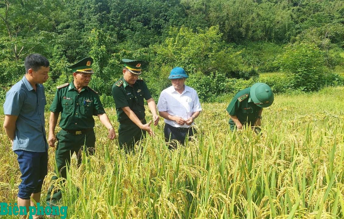 Cán bộ Đồn Biên phòng Na Loi hướng dẫn người dân ở khu vực biên giới chăm sóc cây lúa. Ảnh: Lê Thạch