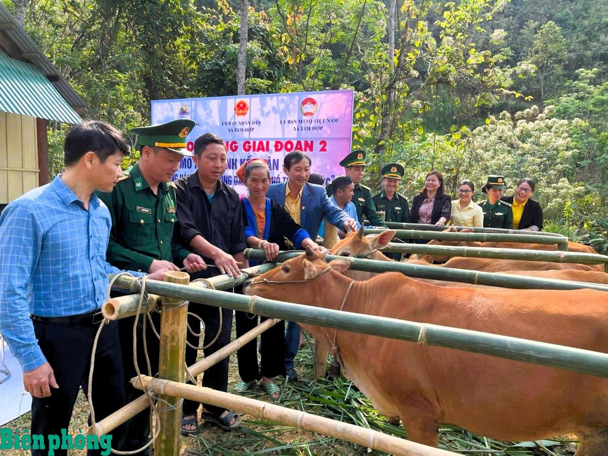 Đồn Biên phòng Tam Hợp phối hợp với chính quyền địa phương tặng bò giống cho các hộ nghèo trong Chương trình “Đồng hành cùng nông dân nghèo vượt khó”. Ảnh: Lê Thạch