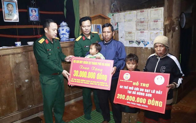 Tối 7/1, Đoàn công tác do Đại tá Trần Hữu Ích, Chỉ huy trưởng Bộ Chỉ huy Quân sự TP Đà Nẵng làm trưởng đoàn, đã đến thăm hỏi, động viên và trao gần 350 triệu đồng cho hai gia đình có người thân gặp nạn trong vụ sạt lở núi xảy ra tại thôn Pứt, xã Hùng Sơn.