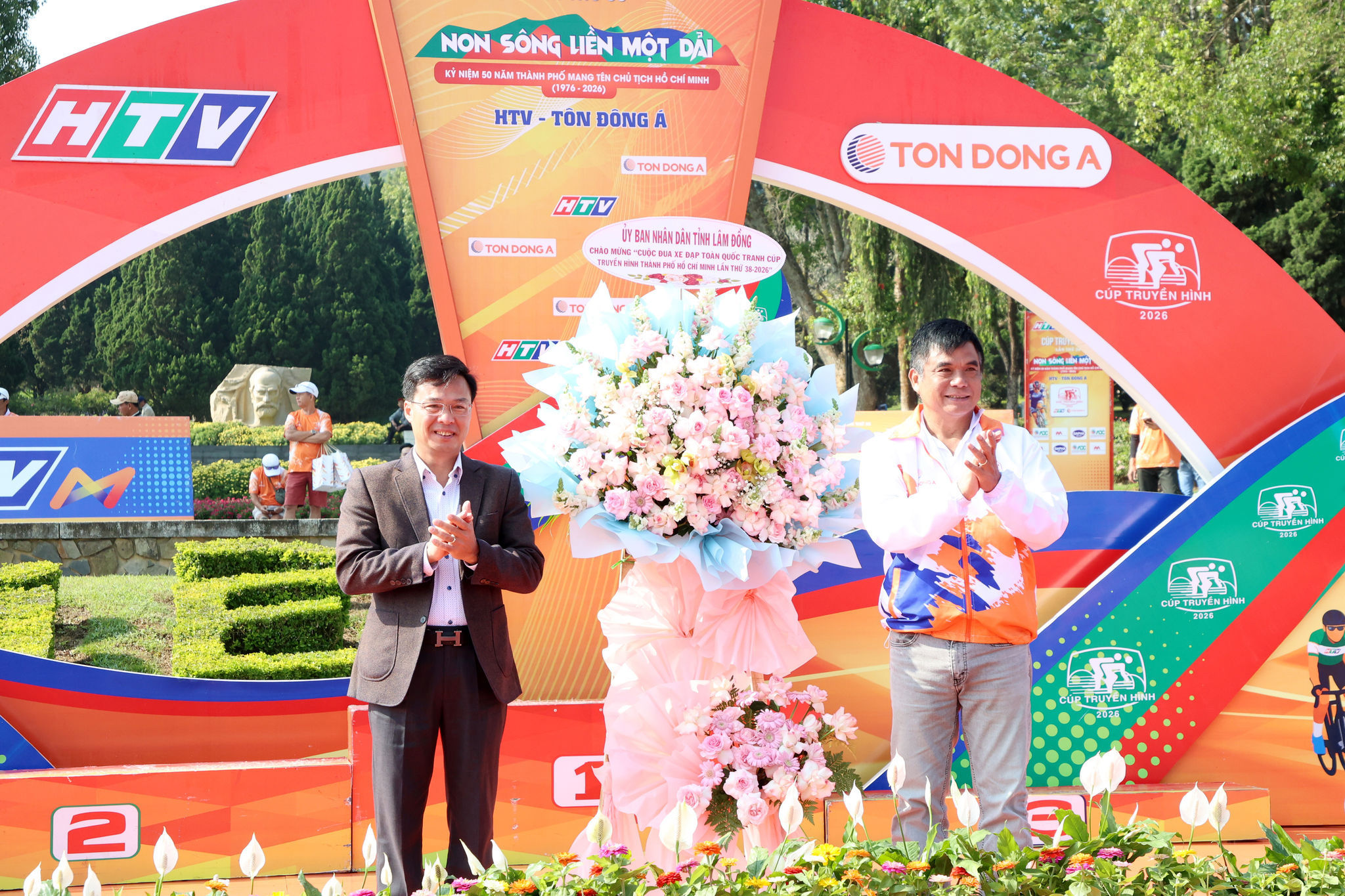 Đồng chí Đinh Văn Tuấn, Tỉnh ủy viên, Phó Chủ tịch UBND tỉnh Lâm Đồng tặng hoa chúc mừng Ban Tổ chức