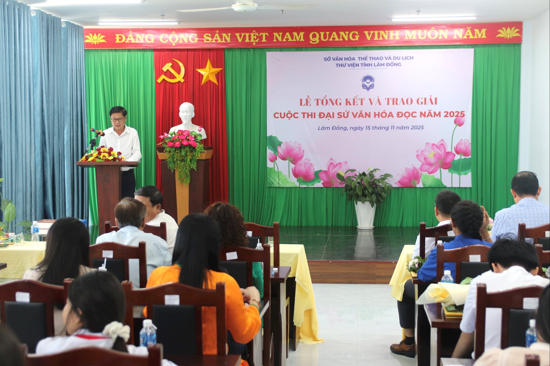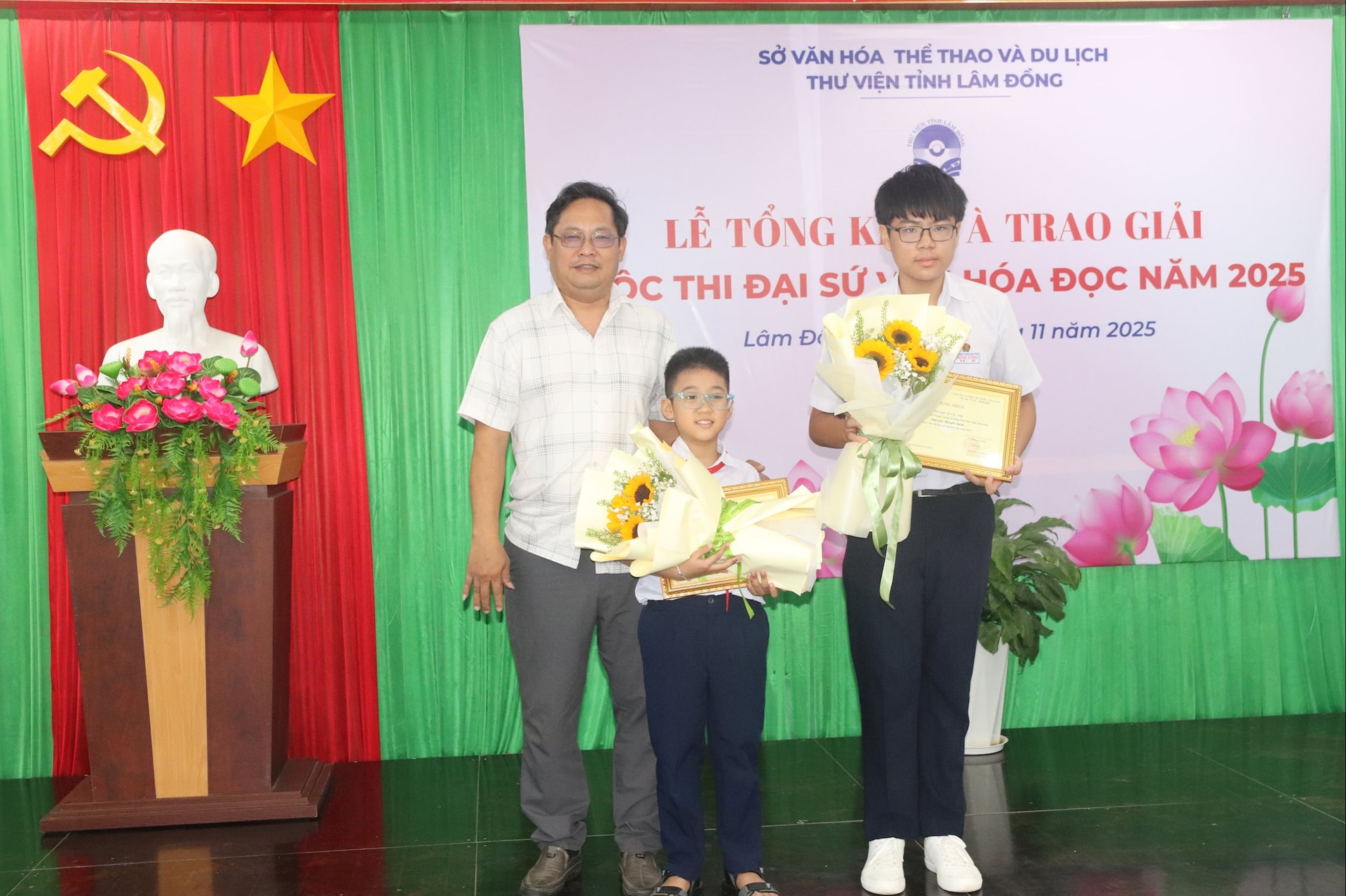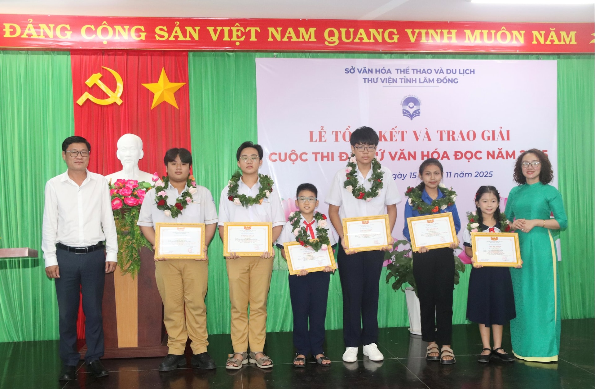Dịp này, Thư viện tỉnh khu vực Đông Lâm Đồng đã trao các giải thưởng cho 2 học sinh đạt giải khuyến khích của Bộ Văn hóa, Thể thao và Du lịch; 6 cá nhân đạt giải chuyên đề vòng sơ khảo cuộc thi Đại sứ Văn hóa đọc năm 2025 khu vực phía Đông tỉnh. Ngoài ra, còn trao giải cho 2 trường học có học sinh tham gia đông nhất và có học sinh đạt giải cao nhất.