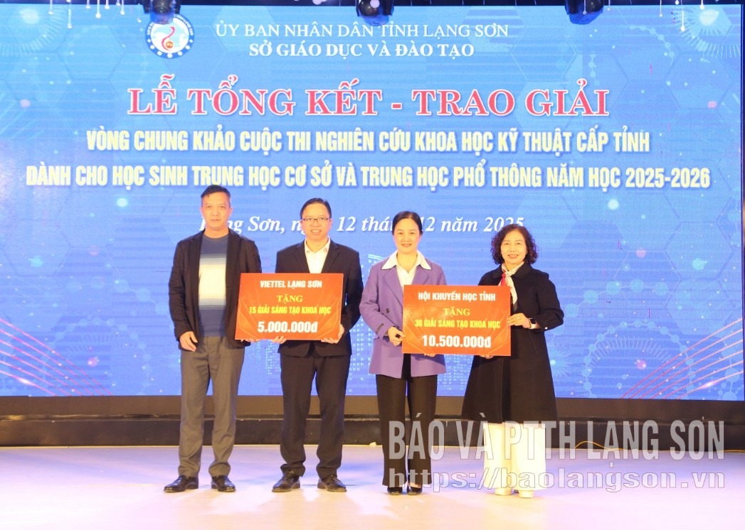 Kết thúc cuộc thi, Ban Tổ chức đã trao giải cho các dự án tiêu biểu gồm: 7 giải Nhất, 17 giải Nhì, 46 giải Ba, 51 giải Tư và 45 giải Sáng tạo do Hội Khuyến học tỉnh và Vietel Lạng Sơn trao tặng. Ban Tổ chức cũng lựa chọn 3 dự án xuất sắc tham dự Cuộc thi nghiên cứu khoa học, kỹ thuật cấp quốc gia.