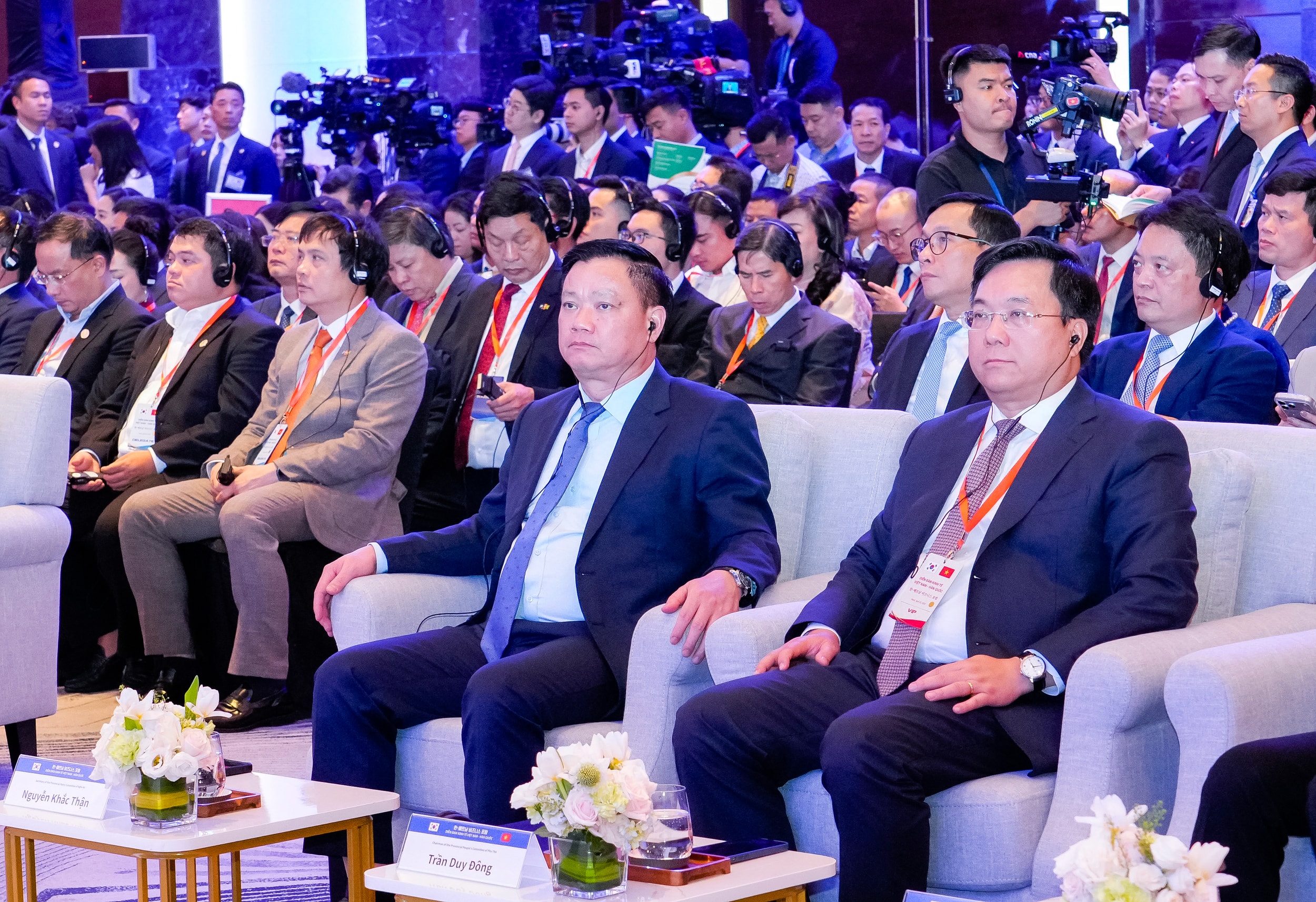 Dự diễn đàn có Tổng thống Hàn Quốc Lee Jae Myung, cùng đại biểu cấp cao hai nước và các doanh nghiệp hàng đầu đến từ hai quốc gia. Ảnh: Phạm Bằng