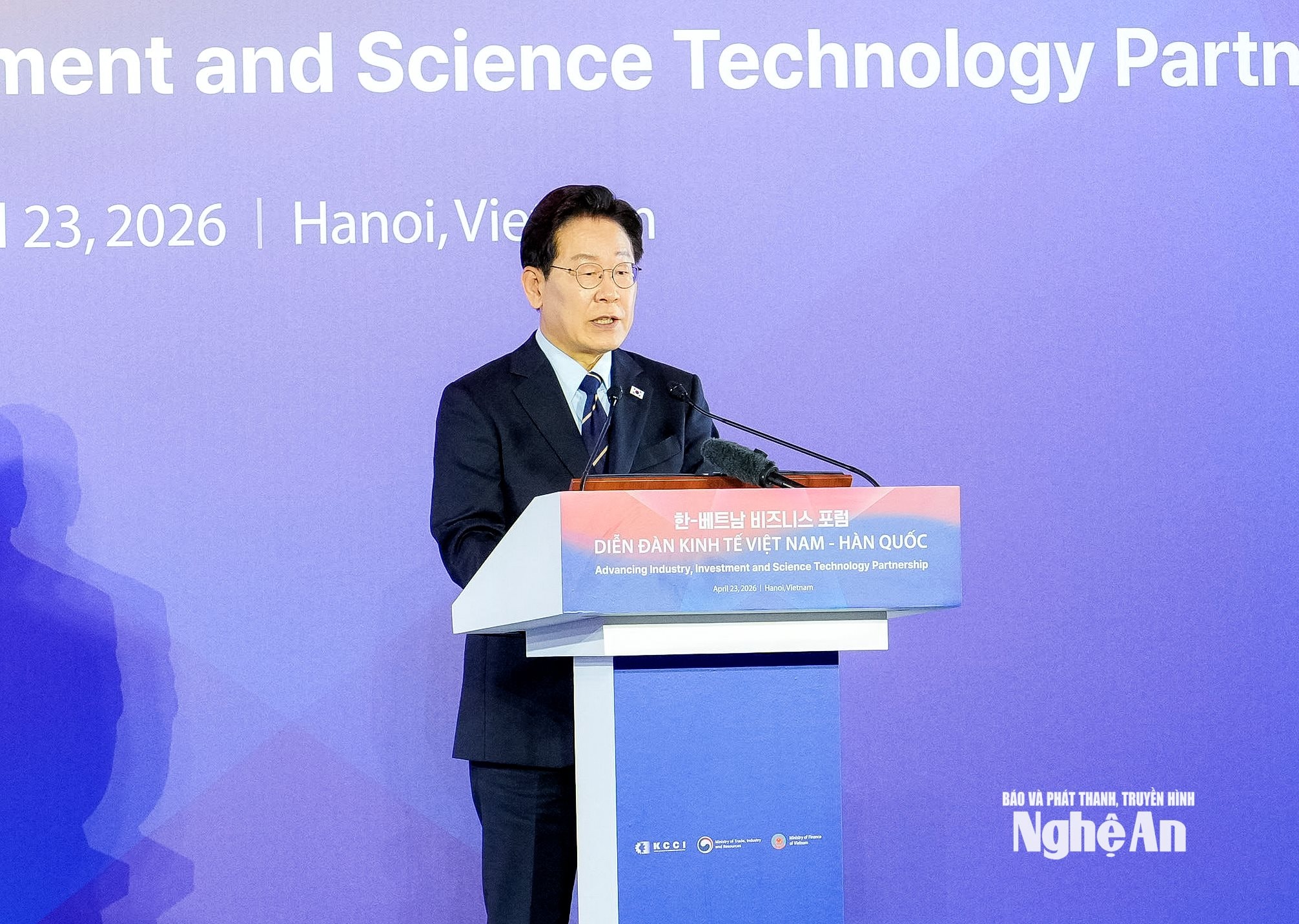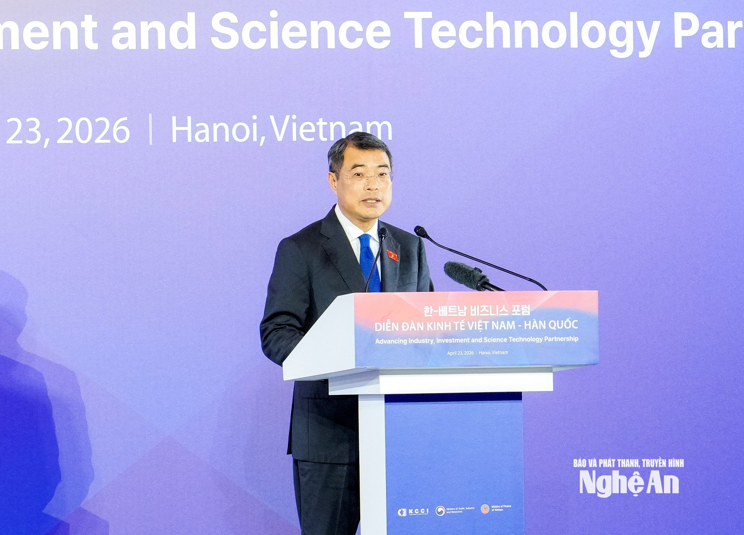 Chiều 23/4, nhân chuyến thăm cấp nhà nước của Tổng thống Hàn Quốc Lee Jae Myung tới Việt Nam, Bộ Tài chính Việt Nam và Bộ Thương mại, Công nghiệp và Tài nguyên (MOTIE), Phòng Thương mại và Công nghiệp Hàn Quốc (KCCI) chủ trì, tổ chức Diễn đàn kinh tế Việt Nam - Hàn Quốc.