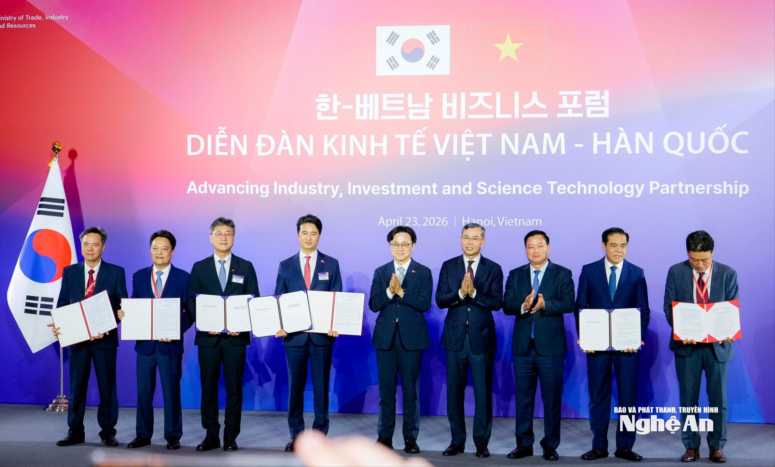 Tại Diễn đàn, Bộ trưởng Bộ Tài chính Việt Nam Ngô Văn Tuấn và Bộ trưởng Bộ Thương mại, Công nghiệp và Tài nguyên Hàn Quốc Kim Jung Kwan đã chứng kiến lễ trao Giấy chứng nhận đăng ký đầu tư Dự án Nhà máy nhiệt điện LNG Quỳnh Lập cho Liên doanh Công ty SK Innovation, Tổng Công ty Điện lực Dầu khí Việt Nam và Công ty TNHH Mía đường Nghệ An; trao Bản ghi nhớ hợp tác phát triển Trung tâm Dữ liệu AI và các hạ tầng hỗ trợ liên quan giữa UBND tỉnh Nghệ An và Công ty SK Innovation, Công ty SK Telecom.