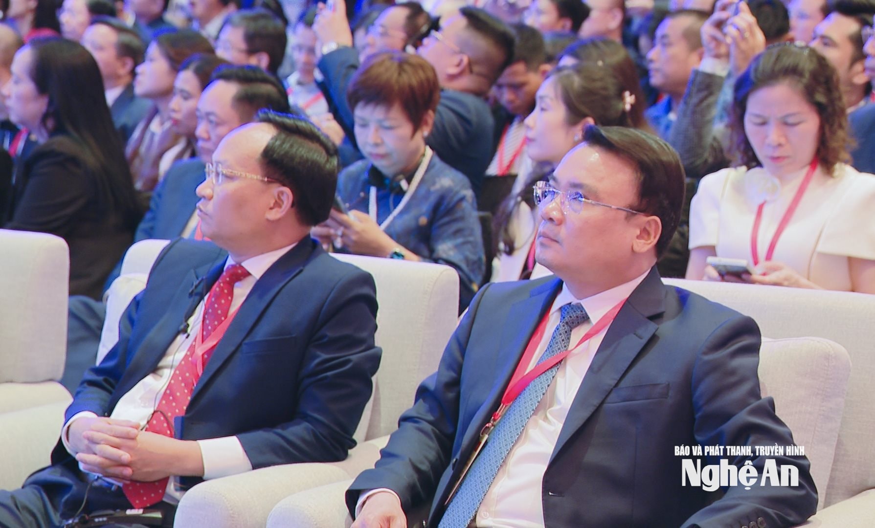 Đoàn đại biểu tỉnh Nghệ An dự diễn đàn có các đồng chí: Nguyễn Khắc Thận - Ủy viên Trung ương Đảng, Bí thư Tỉnh ủy, Trưởng đoàn ĐBQH tỉnh; Võ Trọng Hải - Phó Bí thư Tỉnh ủy, Chủ tịch UBND tỉnh; Phùng Thành Vinh - Phó Chủ tịch UBND tỉnh; Trịnh Thanh Hải - Giám đốc Sở Tài chính; Trần Khánh Thục - Giám đốc Sở Ngoại vụ.