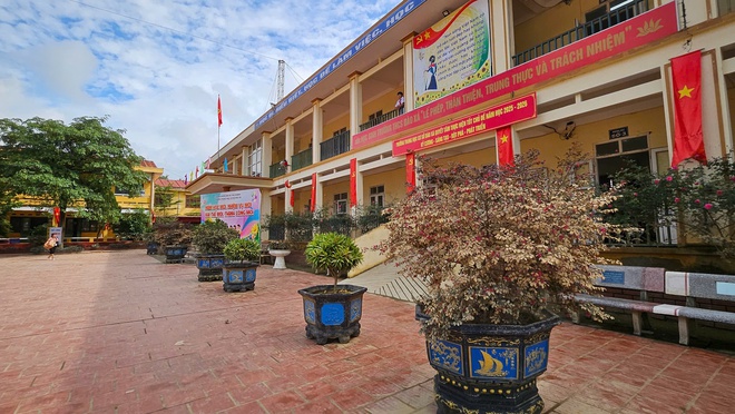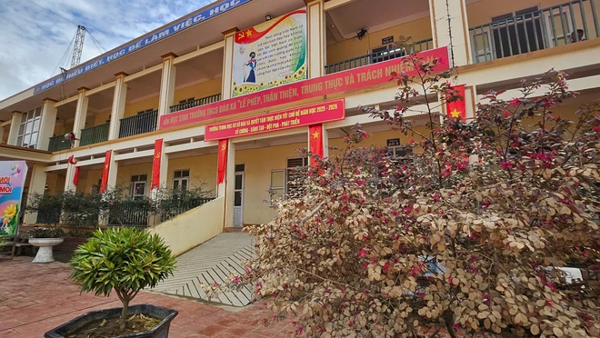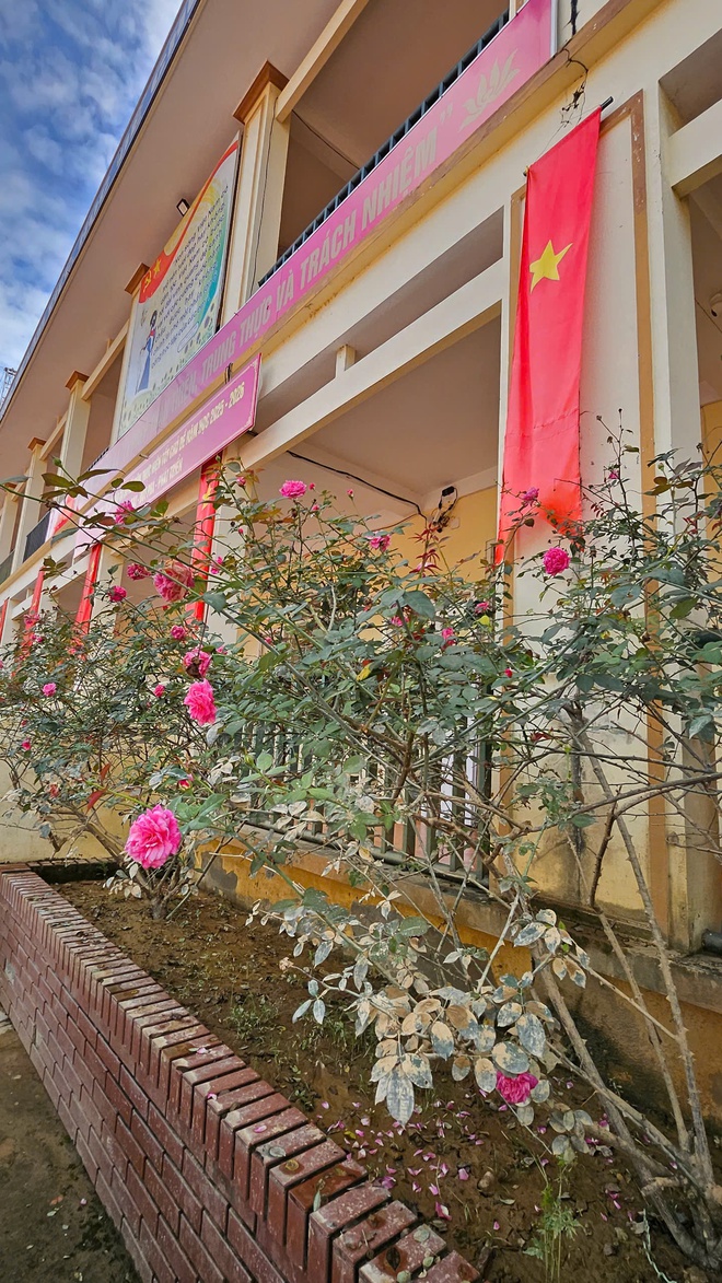 Lũ qua đi, dù chưa kịp khôi phục lại nhưng trong trường học vẫn bừng lên mầm xanh và sắc hồng của sự sống.