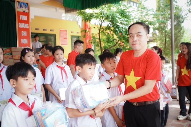 "Những cuốn vở mà mang đến trao tặng hôm nay chính là những cuốn vở các học sinh Trường Lê Quý Đôn đang sử dụng hằng ngày để học tập. Đây là tình cảm của học sinh, phụ huynh và thầy cô Trường Lê Quý Đôn gửi tới các bạn học sinh vùng lũ, với mong muốn các em sớm ổn định học tập và hoàn thành tốt năm học 2025–2026" - thầy giáo Nguyễn Anh Tuấn - Hiệu trưởng Trường THCS và THPT Lê Quý Đôn nhắn nhủ.