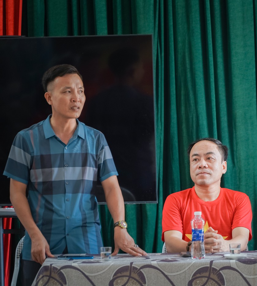 Thầy giáo hiệu trưởng Nguyễn Anh Tuấn (ảnh 1) cùng các phụ huynh và học sinh Trường THCS và THPT Lê Quý Đôn trao gửi yêu thương tới thầy trò vùng rốn lũ Tân Khánh của Thái Nguyên.