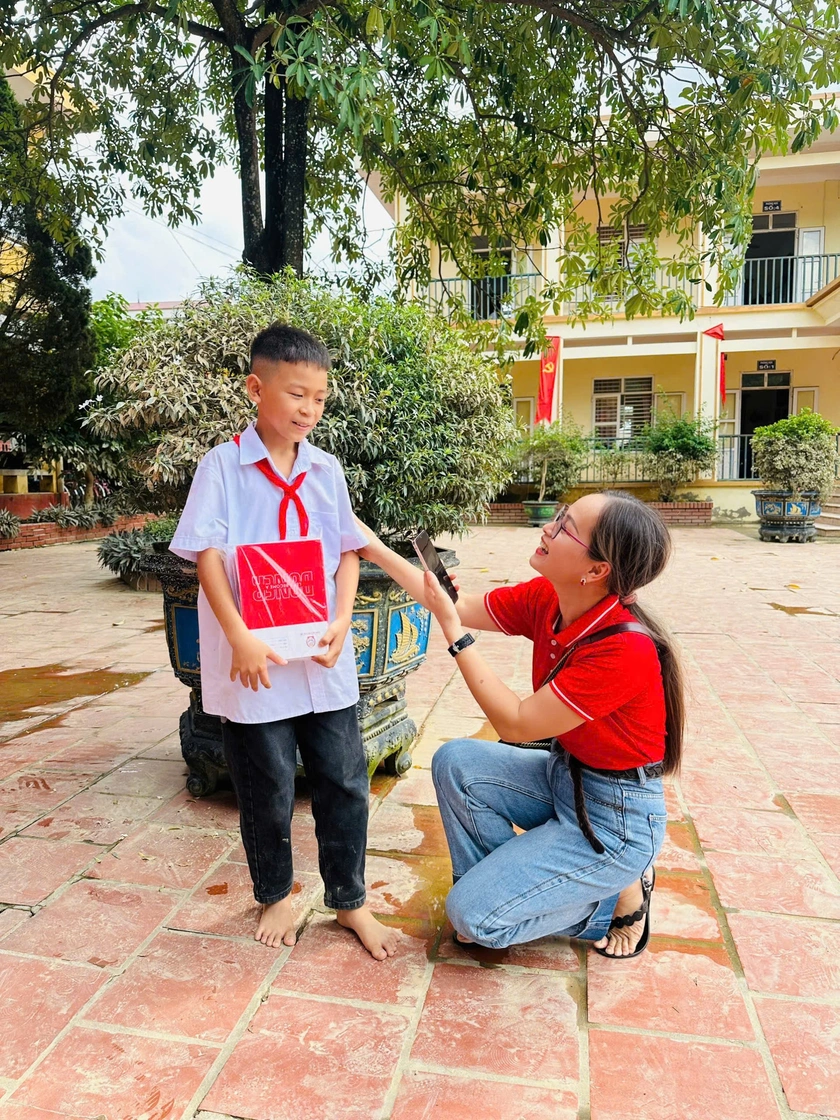 Chứng kiến niềm vui của bạn Tuấn Anh - Trường THCS Đào Xá khi "được tiếp sức sau lũ" – bạn Vũ Khánh Ly - Trường THCS và THPT Lê Quý Đôn cảm thấy hạnh phúc khi được "trao gửi yêu thương".