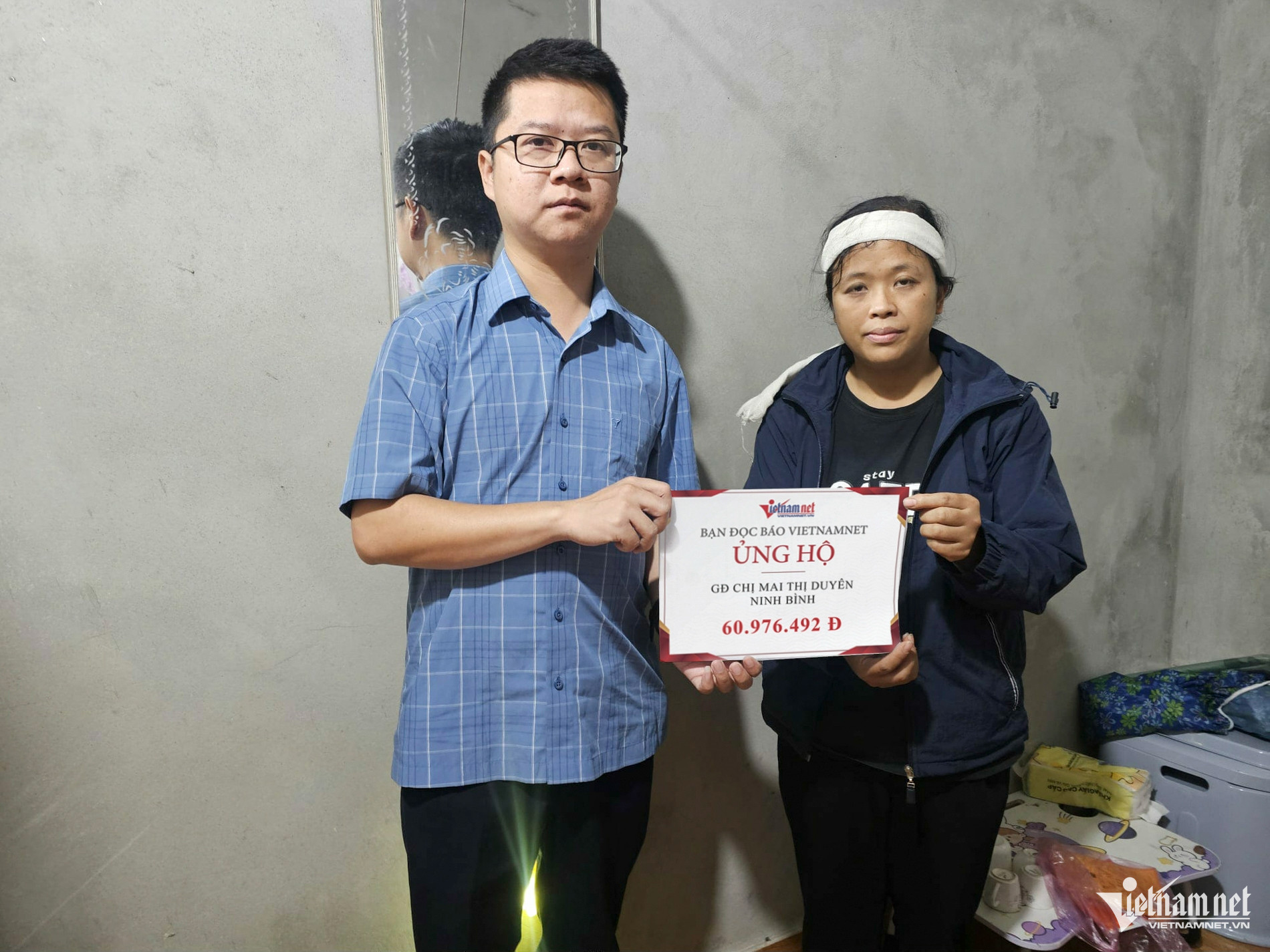 Nhận được số tiền bạn đọc ủng hộ, chị Duyên xúc động bày tỏ lòng biết ơn sâu sắc tới bạn đọc Báo VietNamNet, các mạnh thường quân đã dang tay giúp đỡ gia đình lúc khó khăn.