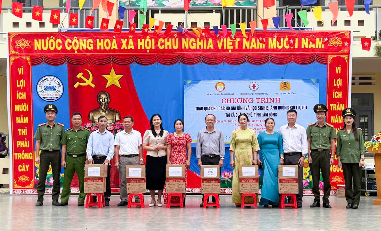 Cũng trong dịp này, Hội Chữ thập đỏ tỉnh phối hợp trao 250 phần quà (mỗi suất trị giá khoảng 500 nghìn đồng) bao gồm lương thực, nhu yếu phẩm, nước khoáng và sữa) cho phụ huynh học sinh có hoàn cảnh khó khăn, bị ảnh hưởng bởi mưa lũ tại xã Quảng Phú.