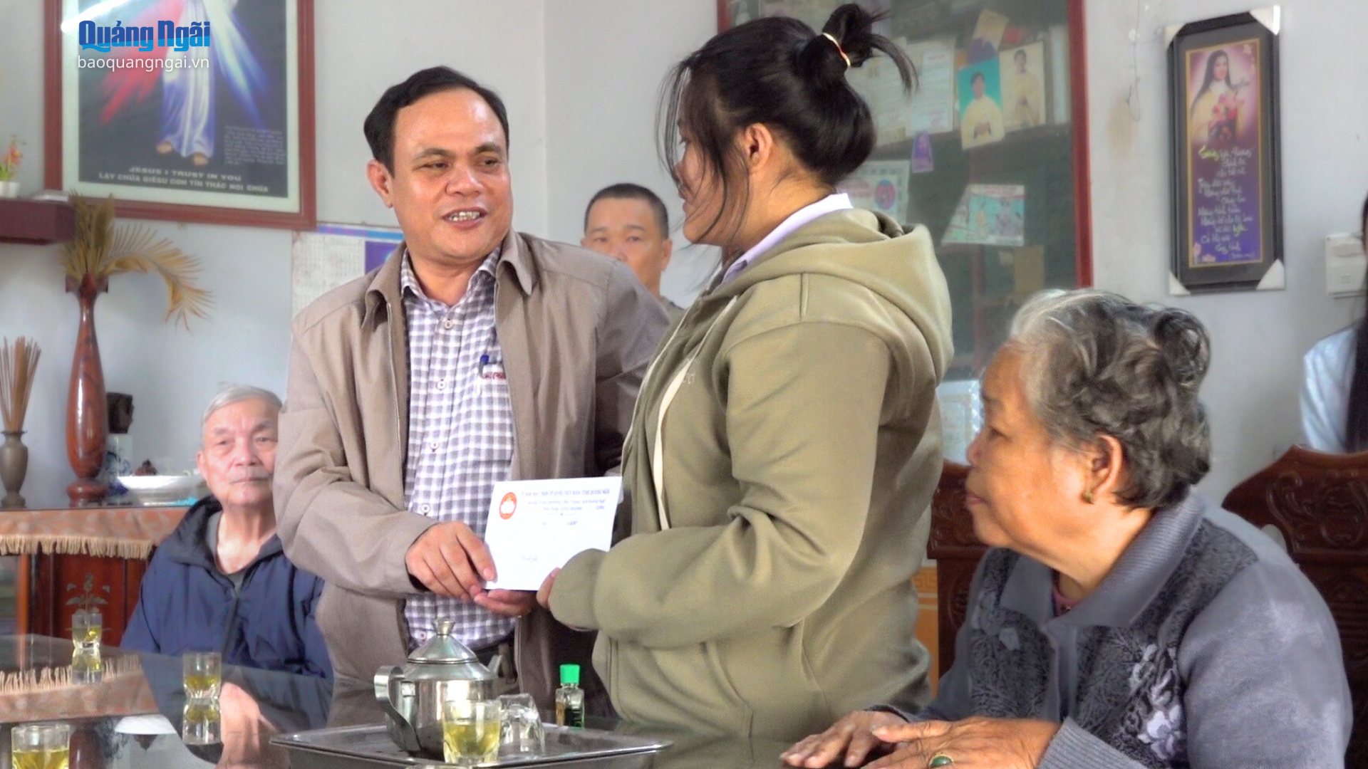 Đồng thời, trao hỗ trợ 25 triệu đồng cho gia đình chị Nguyễn Thị Chung (50 tuổi), ngụ thôn Tây, xã Sơn Tịnh, có người thiệt mạng do lũ lụt.