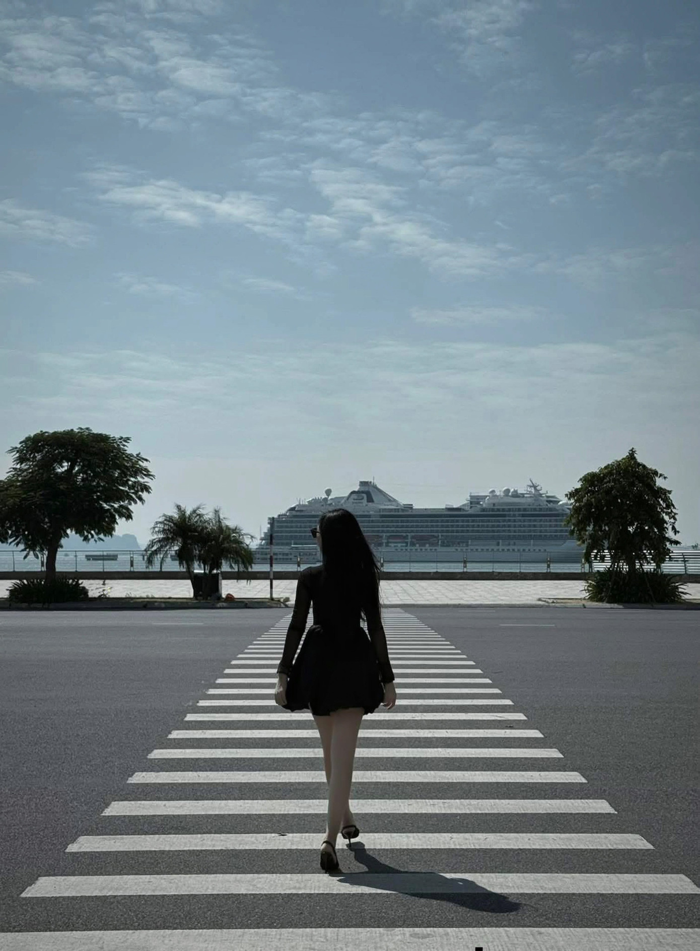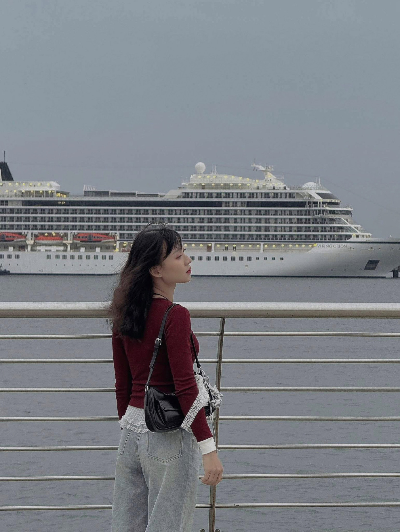 "Chụp ảnh cùng tàu biển trở thành trào lưu của giới trẻ khi đến đây. Chúng em gọi vui đây là phong cách Hồng Kông ở Hạ Long", Thùy Dương chia sẻ.