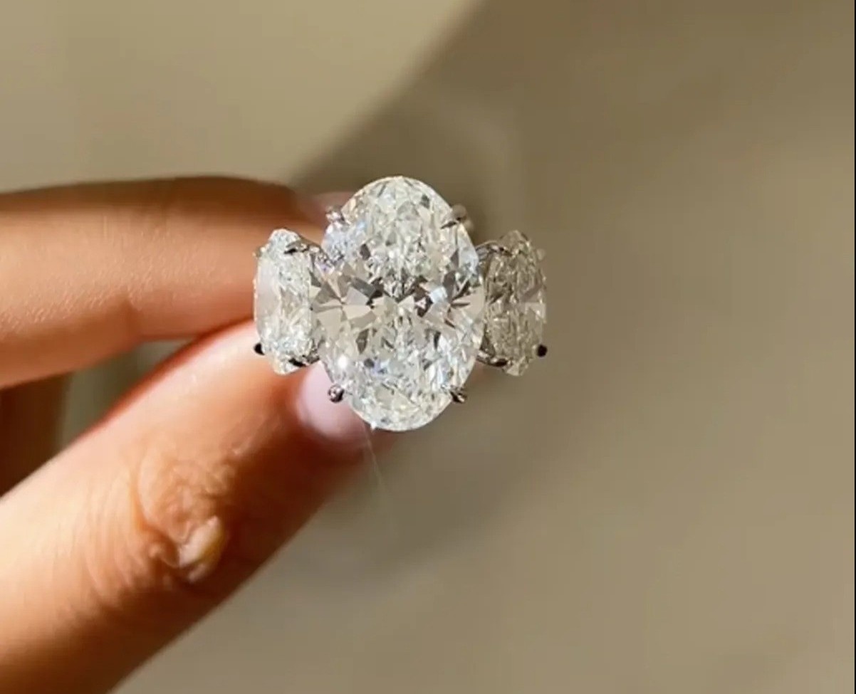 Chiếc nhẫn có viên kim cương hình bầu dục lớn ở giữa, hai bên là hai viên nhỏ hơn cùng kiểu cắt. Trên Instagram, Zoe gọi đây là “chiếc nhẫn ly hôn trong mơ” và nói rằng cô “có thể chết vì sung sướng” khi đeo nó.