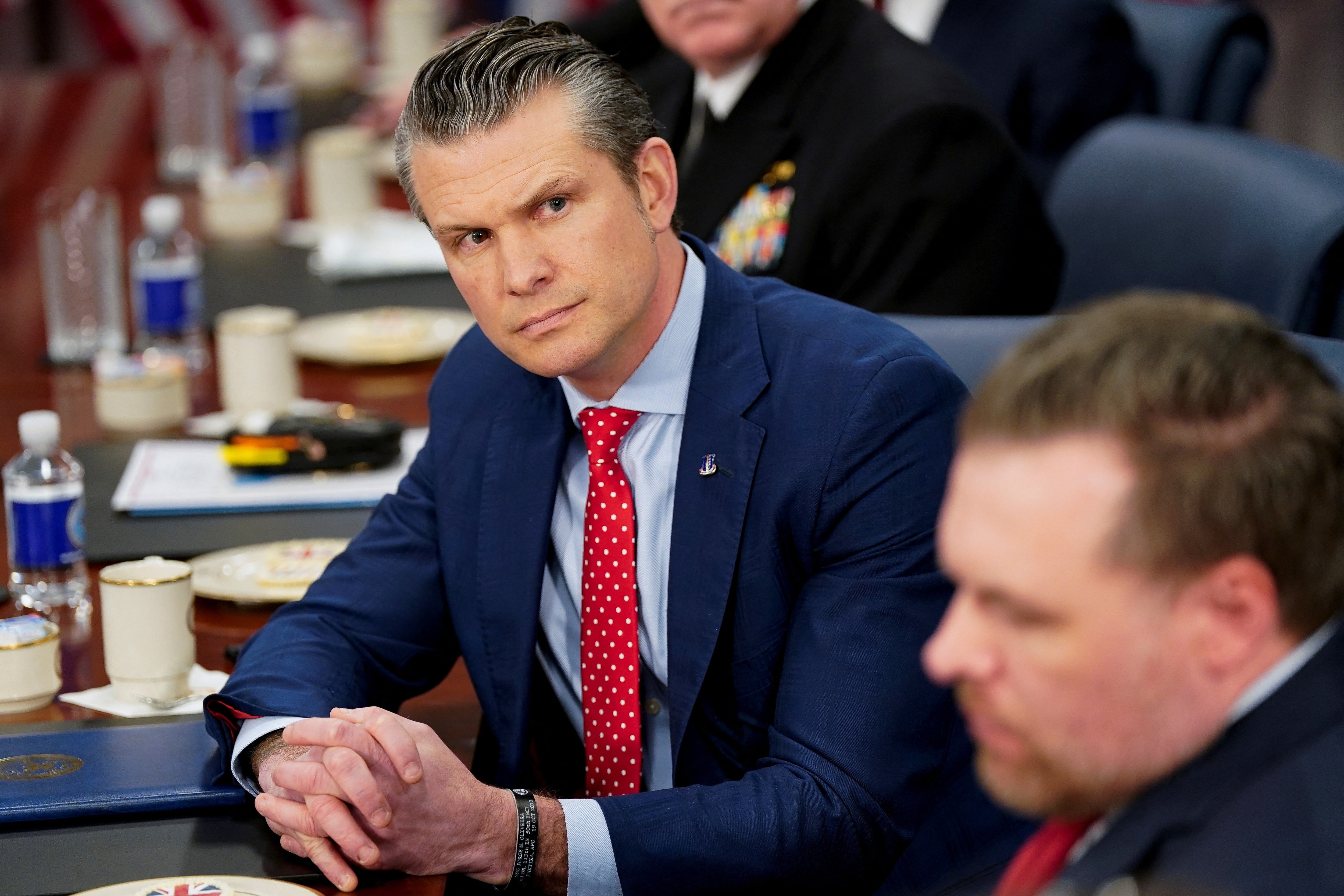 Bộ trưởng Chiến tranh Mỹ Pete Hegseth làm việc tại Lầu Năm Góc ở Washington (Mỹ) ngày 6/3, diện mạo của ông Hegseth được nhiều nam giới Mỹ lấy làm chuẩn mực khi can thiệp thẩm mỹ. Ảnh: Reuters.