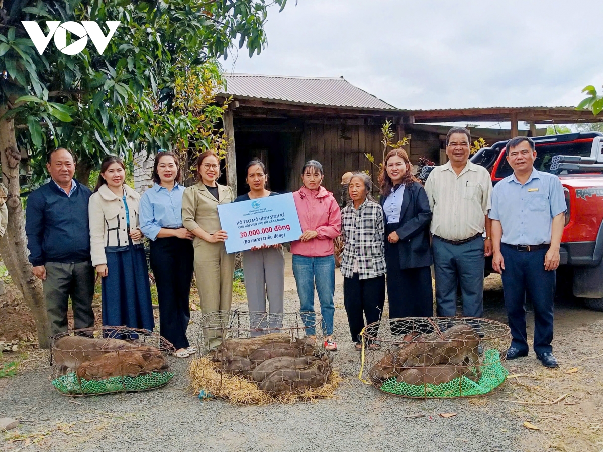 Tại các xã Ia Lốp, Ia Rvê và Ea Bung, Đắk Lắk, Hội Liên hiệp Phụ nữ tỉnh đã trao 10 mô hình sinh kế cho hội viên phụ nữ có hoàn cảnh khó khăn, nhằm giúp các gia đình phát triển sản xuất, ổn định đời sống. Các mô hình hỗ trợ gồm nuôi heo rừng lai, bò hoặc trâu, phù hợp với điều kiện chăn nuôi và nhu cầu thực tế của từng hộ.