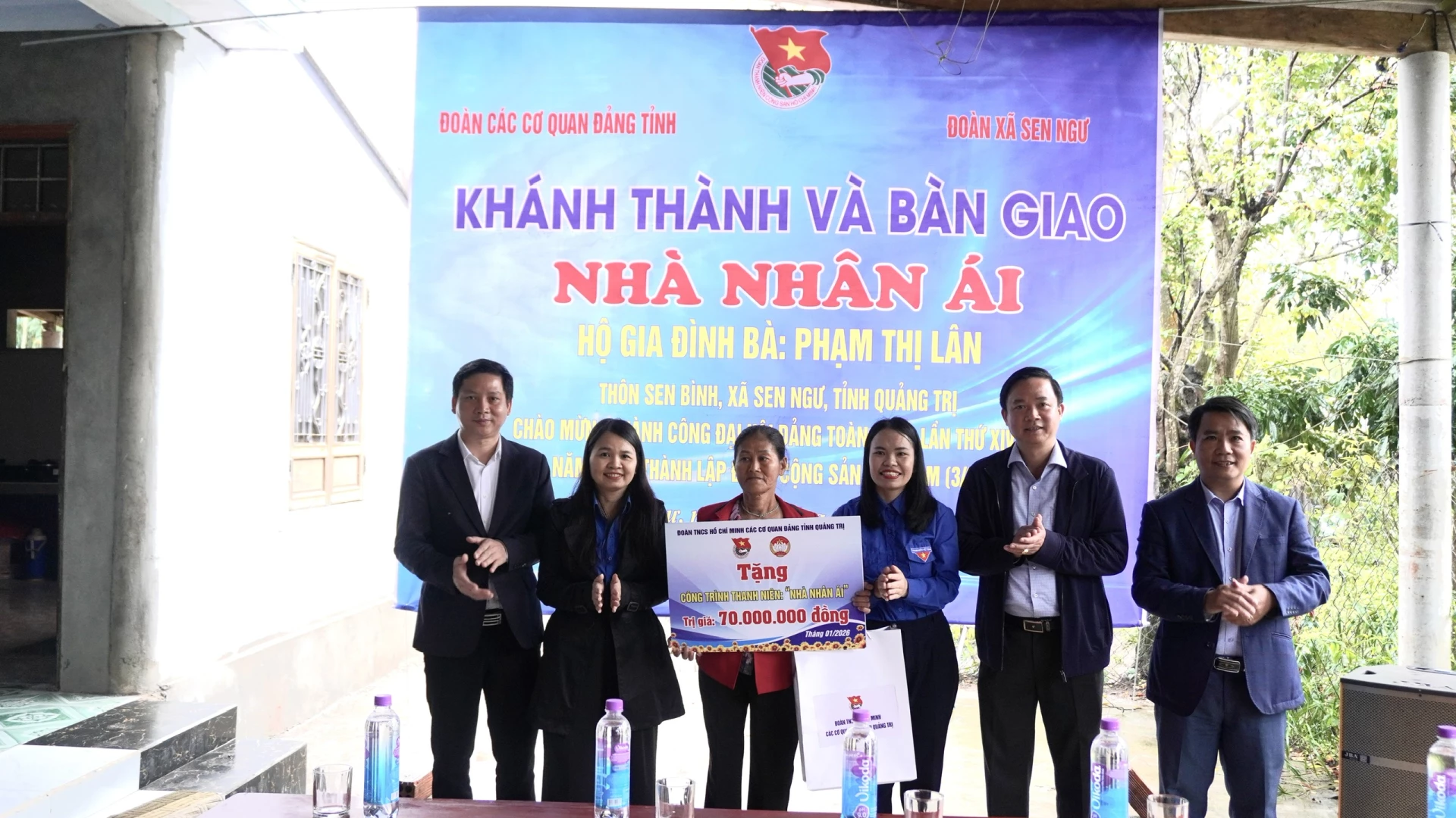 Đoàn Thanh niên cộng sản Hồ Chí Minh Các cơ quan Đảng tỉnh bàn giao nhà tình nghĩa cho bà Phạm Thị Lân - Ảnh: H.T