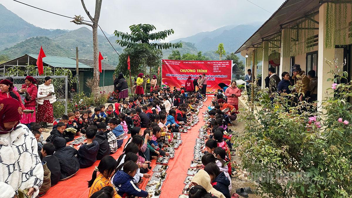 Bên cạnh đó, chương trình còn tổ chức “Bữa cơm yêu thương” dành cho 280 em học sinh tại điểm trường thôn Kho Là; bữa ăn đủ đầy, ấm áp, lan tỏa tình yêu thương, sự sẻ chia, tiếp thêm động lực để các em vượt qua khó khăn, nuôi dưỡng ước mơ học tập, trở thành những công dân có ích cho xã hội trong tương lai.