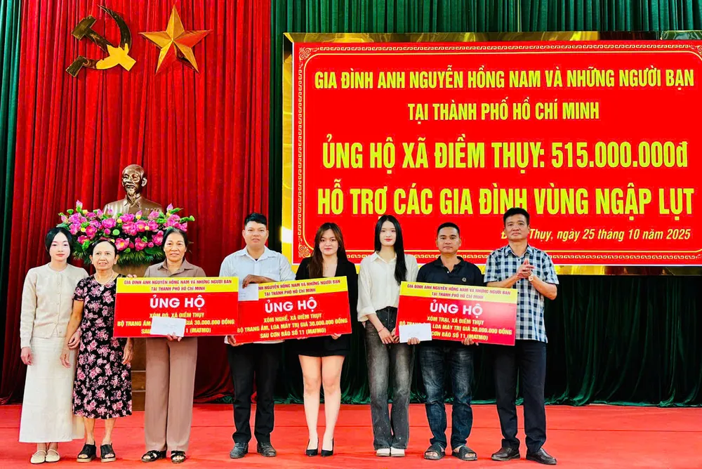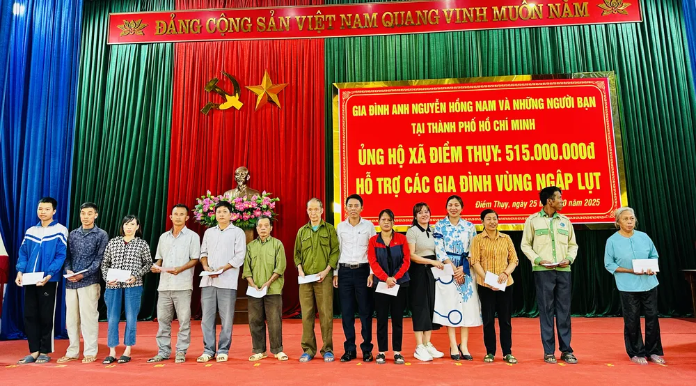 Tối 25-10, nhóm thiện nguyện từ TP.HCM đã đến thăm và tặng quà vùng ngập lũ do bão số 11 tại xã Điềm Thụy, tỉnh Thái Nguyên.