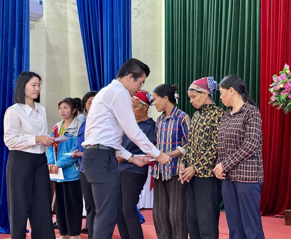 Nhóm thiện nguyện từ TP. HCM trao quà cho các hộ nghèo trên địa bàn xã Điềm Thủy, tỉnh Thái Nguyên.