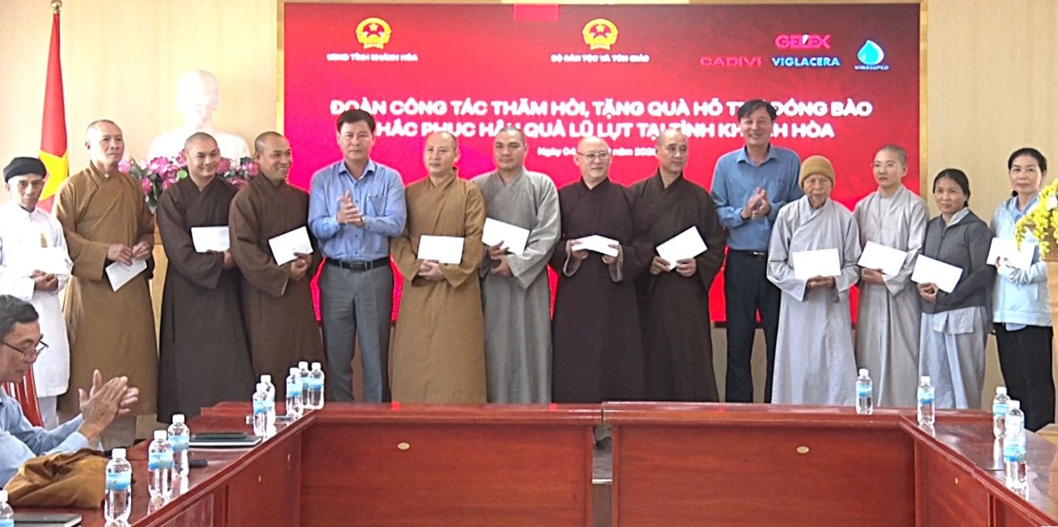 Ngày 4-2, Sở Dân tộc và Tôn giáo tỉnh Khánh Hòa phối hợp với Ủy ban MTTQ Việt Nam tỉnh đến thăm, tặng quà cho 46 cơ sở tín ngưỡng, tôn giáo trên địa bàn xã Diên Khánh bị thiệt hại do mưa lũ cuối tháng 11-2025.