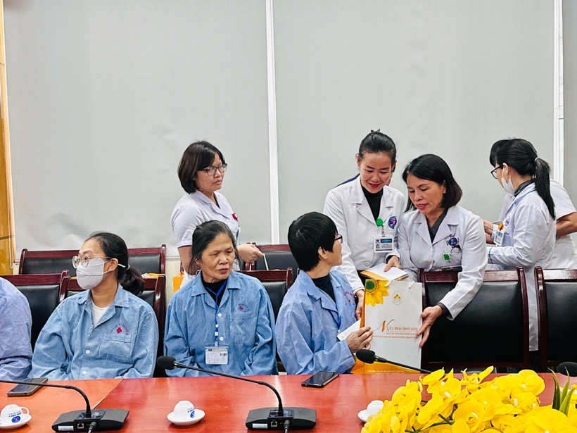 Bệnh viện K tổ chức cuộc gặp gỡ, thăm hỏi, động viên và trao quà đến những người bệnh là thầy cô giáo. (Ảnh: PV/Vietnam+)