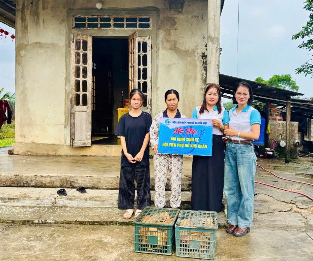 Hội LHPN xã Cửa Việt trao 200 con gà giống hỗ trợ chị Nguyễn Thị Thúy Minh, thôn Tân Hải phát triển kinh tế gia đình - Ảnh: N.B