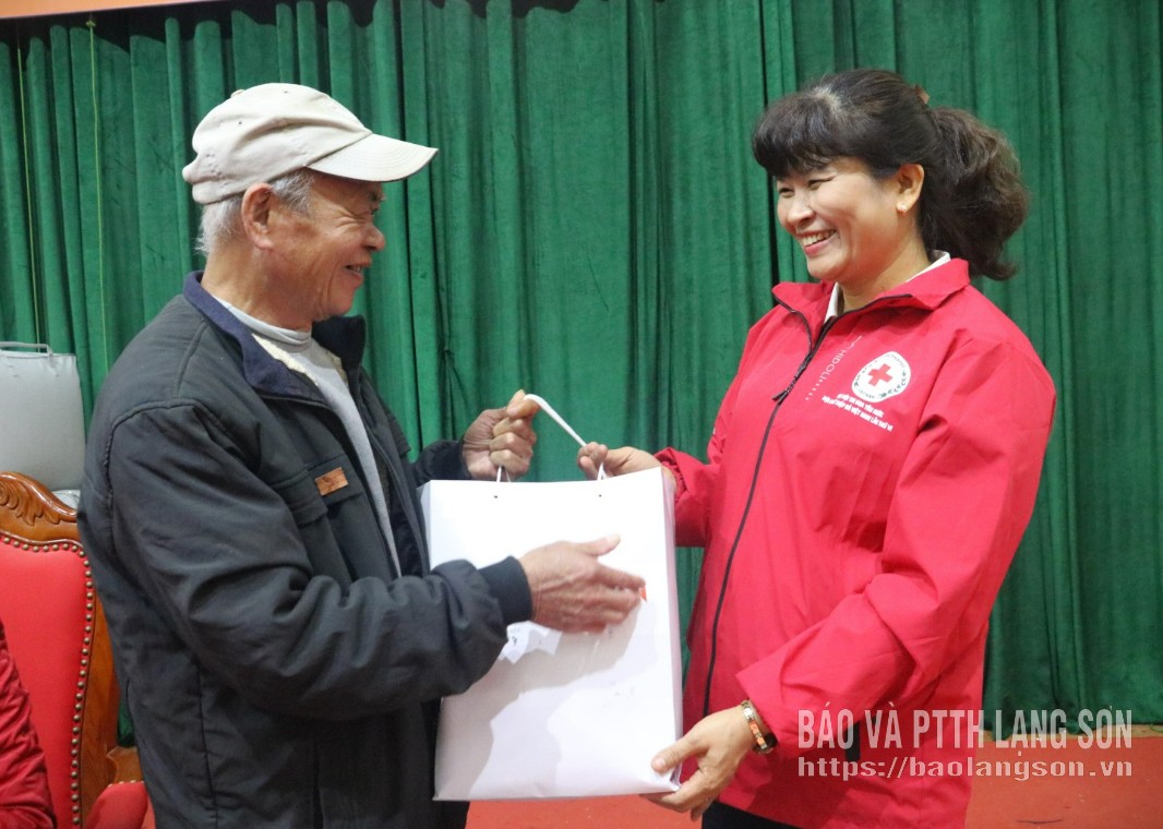 Lãnh đạo Hội Chữ thập đỏ tỉnh trao quà cho các hộ dân bị ảnh hưởng bởi mưa bão tại xã Thất Khê