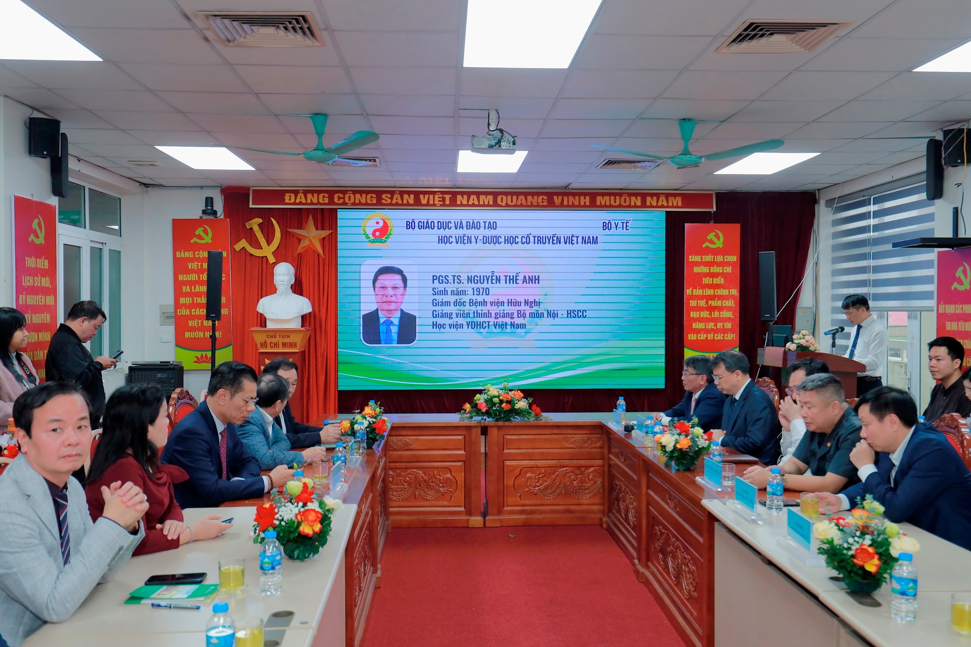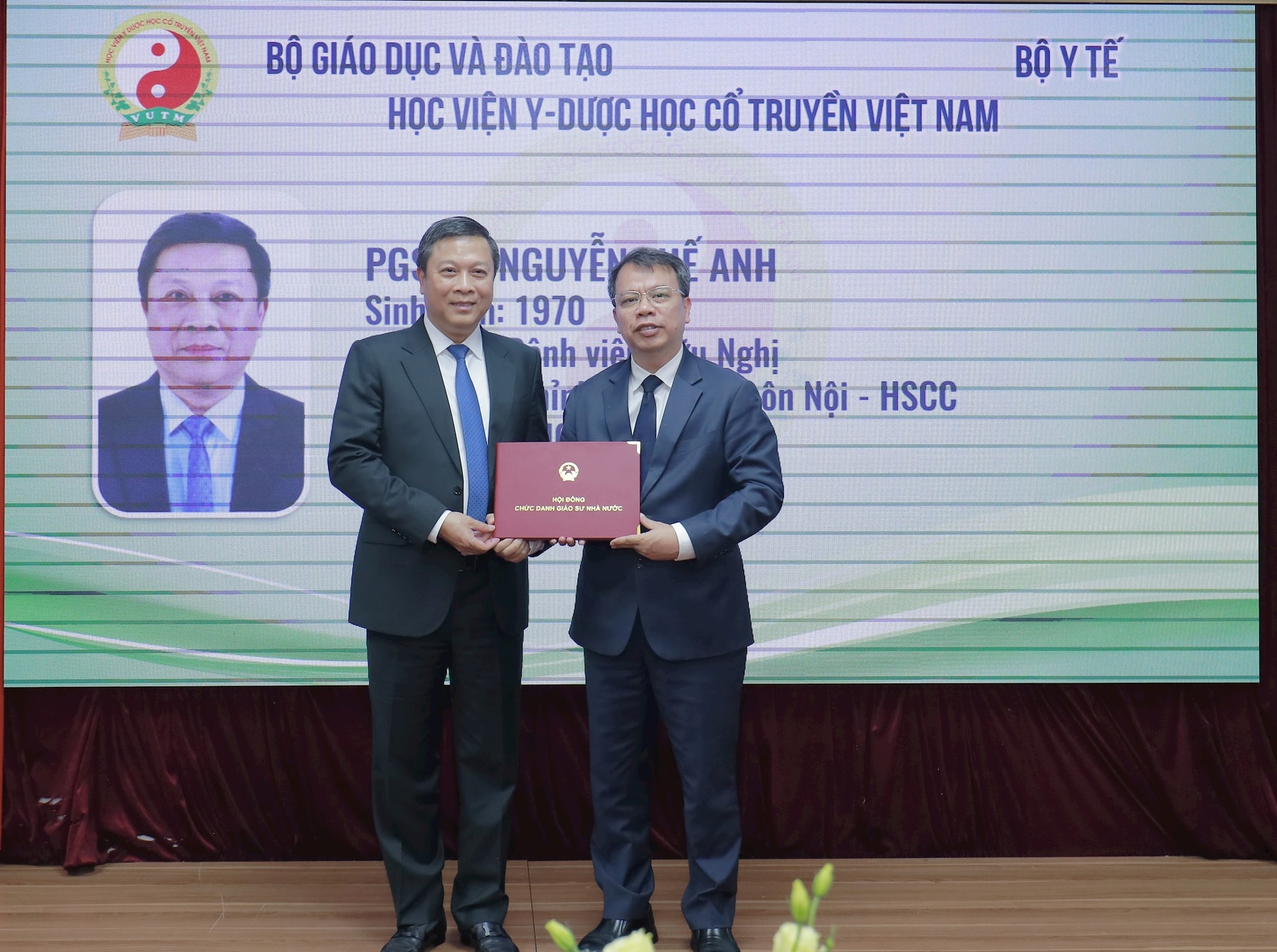 Lãnh đạo Học viện Y dược học cổ truyền Việt Nam trao quyết định bổ nhiệm tân phó giáo sư. Ảnh: CTV
