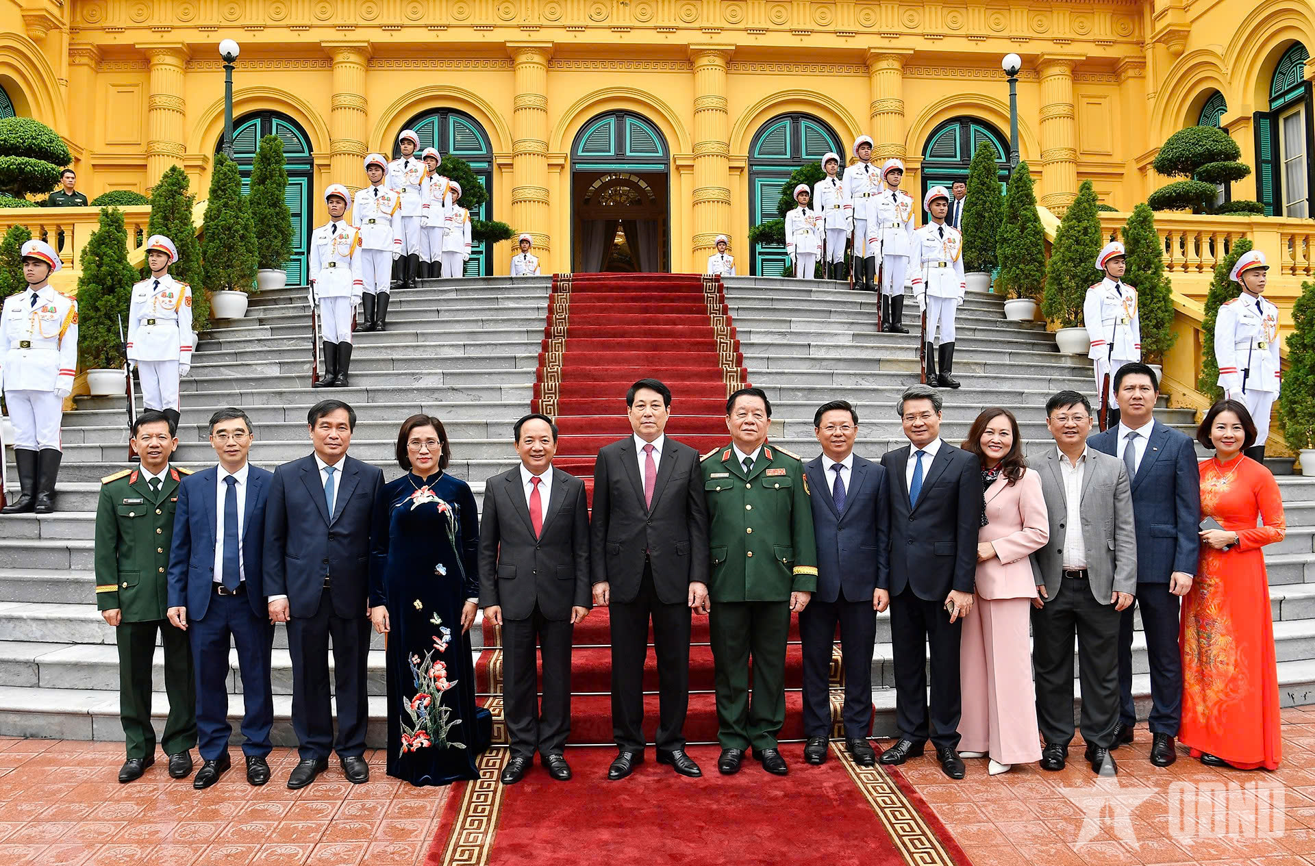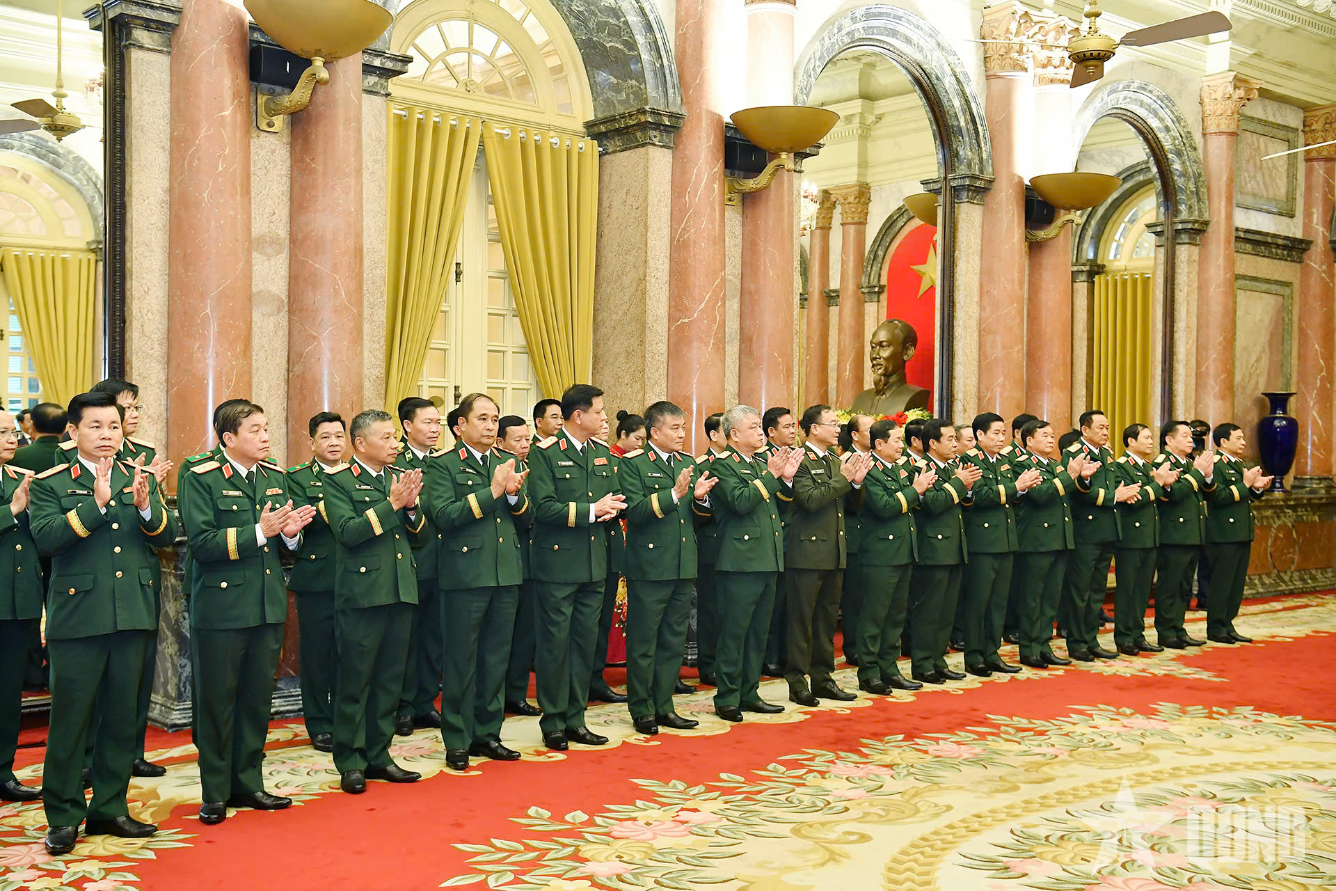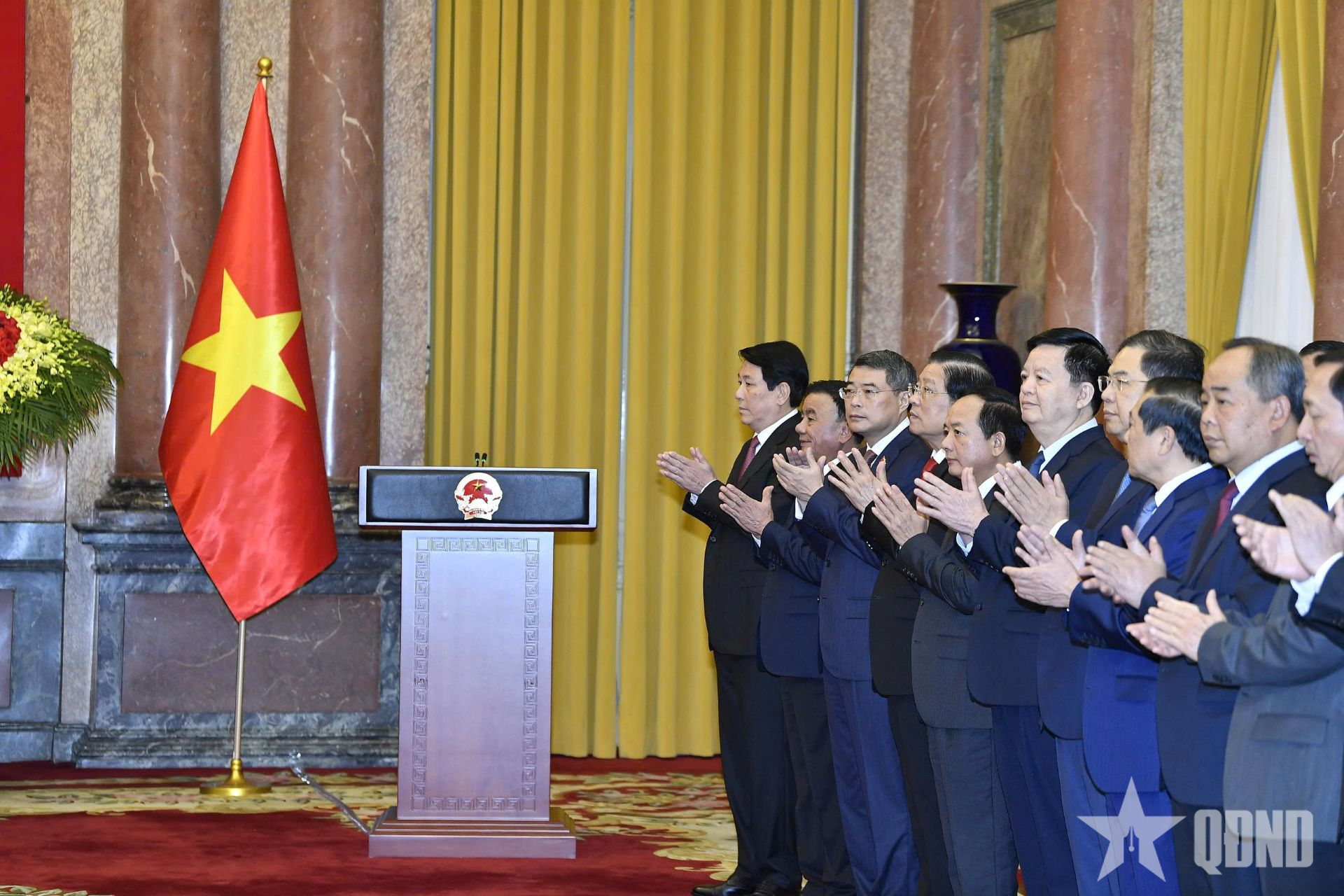 Đánh giá tình hình đó đang đặt ra những yêu cầu mới ngày càng cao đối với Lực lượng vũ trang trong nhiệm vụ xây dựng và bảo vệ Tổ quốc, Chủ tịch nước đề nghị các đồng chí vừa được bổ nhiệm, thăng quân hàm tiếp tục phát huy truyền thống vẻ vang của Quân đội nhân dân Việt Nam anh hùng và phẩm chất Bộ đội Cụ Hồ; tiếp tục giữ gìn đạo đức cách mạng, tuyệt đối trung thành với Đảng, Tổ quốc và nhân dân; đoàn kết, gắn bó máu thịt với cán bộ, chiến sĩ và nhân dân; tiếp tục học tập, tu dưỡng, rèn luyện để luôn xứng đáng là người lãnh đạo, chỉ huy tài năng, mẫu mực, nỗ lực phấn đấu, khắc phục khó khăn, thử thách, hoàn thành xuất sắc mọi nhiệm vụ mà Đảng, Nhà nước và nhân dân tin tưởng giao phó.