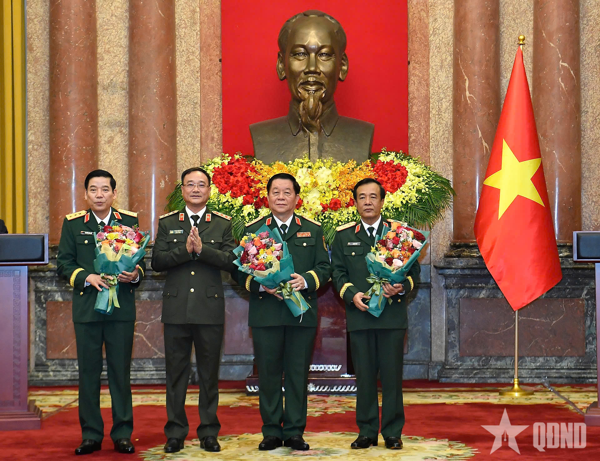 Chủ tịch nước nêu rõ, ba đồng chí được bổ nhiệm, thăng quân hàm là những cán bộ ưu tú của Đảng, Nhà nước và Quân đội nhân dân; đều được đào tạo cơ bản, có hệ thống, trưởng thành từ đơn vị, cơ sở; được rèn luyện, thử thách qua rất nhiều cương vị, lĩnh vực, môi trường công tác khác nhau, dù trong bất cứ điều kiện, hoàn cảnh nào, các đồng chí luôn thể hiện là những cán bộ có bản lĩnh chính trị vững vàng, phẩm chất đạo đức cách mạng trong sáng; gương mẫu, tận tụy, trách nhiệm; luôn hoàn thành tốt và xuất sắc mọi nhiệm vụ được giao. Trong quá trình công tác, các đồng chí đã lập được nhiều thành tích, chiến công xuất sắc, được Đảng, Nhà nước, Quân ủy Trung ương, Bộ Quốc phòng và bạn bè quốc tế tặng thưởng nhiều phần thưởng cao quý.