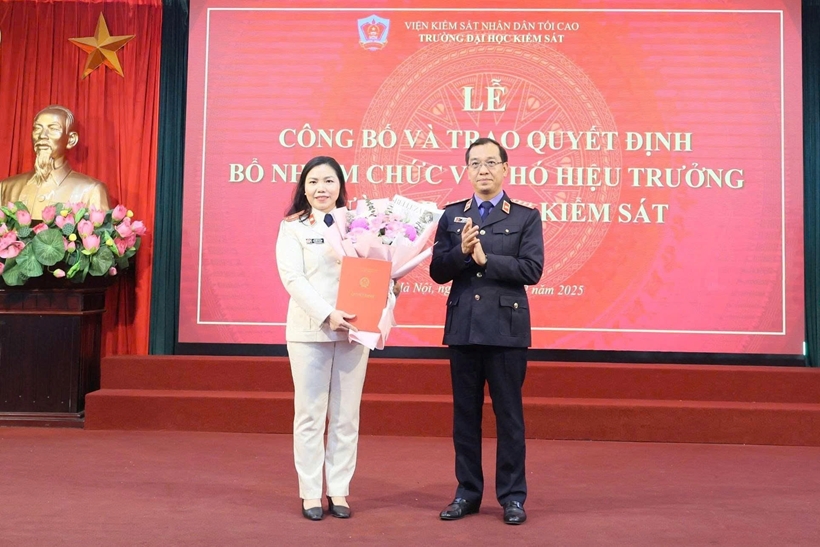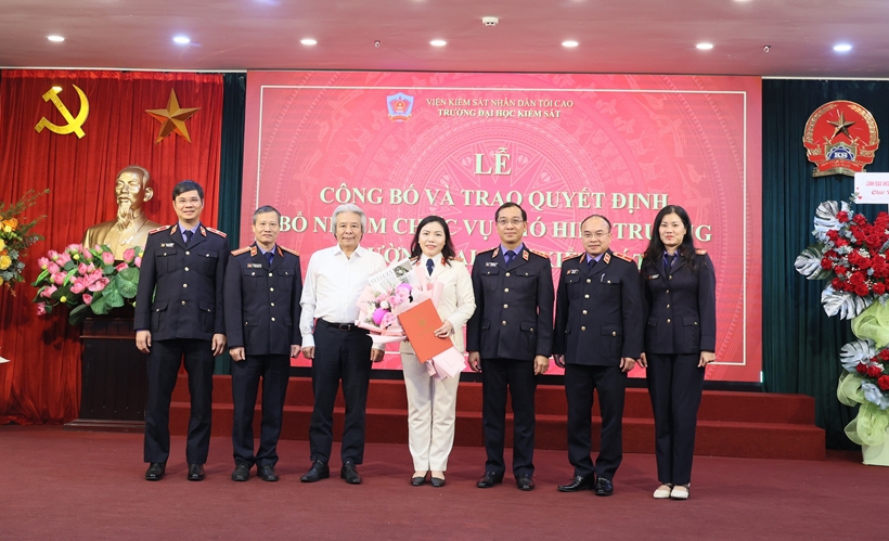 Tại buổi Lễ, đồng chí Nguyễn Văn Thắng, Phó Vụ trưởng Vụ Tổ chức cán bộ VKSND tối cao công bố Quyết định số 396/QĐ-VKSTC ngày 28/11/2025 của Viện trưởng VKSND tối cao về việc bổ nhiệm đồng chí Nguyễn Thị Lộc, Giảng viên chính, Trưởng phòng Quản lý khoa học và Hợp tác quốc tế giữ chức vụ Phó Hiệu trưởng Trường Đại học Kiểm sát. Thời hạn bổ nhiệm là 5 năm, kể từ ngày 1/12/2025.
