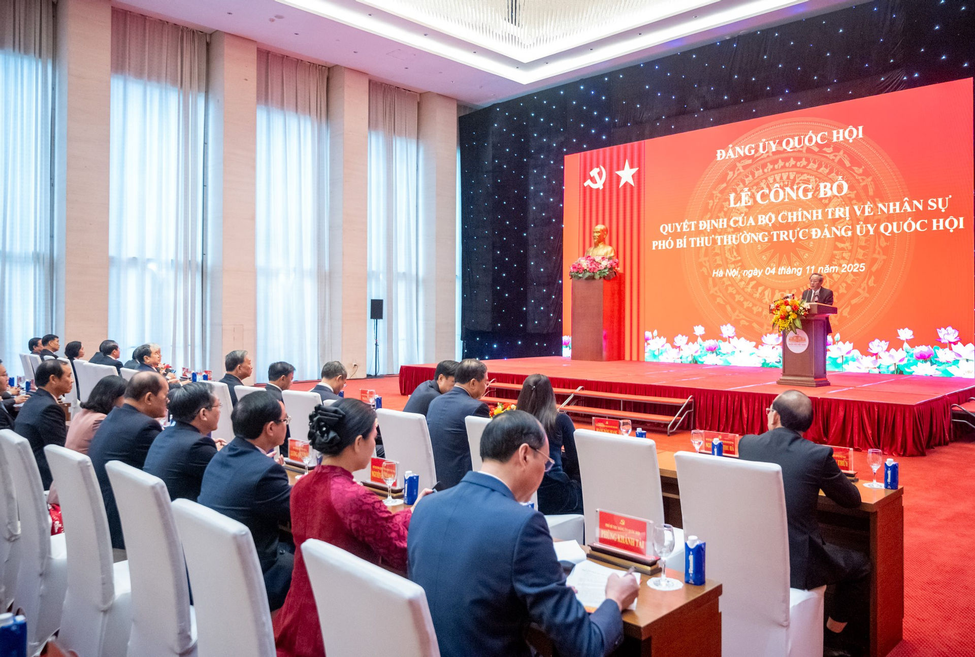 Trước đó, Bộ Chính trị đã có Quyết định số 2499 ngày 03/11/2025 để đồng chí Nguyễn Khắc Định - Ủy viên Ban Chấp hành Trung ương Đảng, Phó Bí thư Thường trực Đảng ủy Quốc hội, Phó Chủ tịch Quốc hội khóa XV - thôi giữ chức Phó Bí thư Thường trực Đảng ủy Quốc hội.