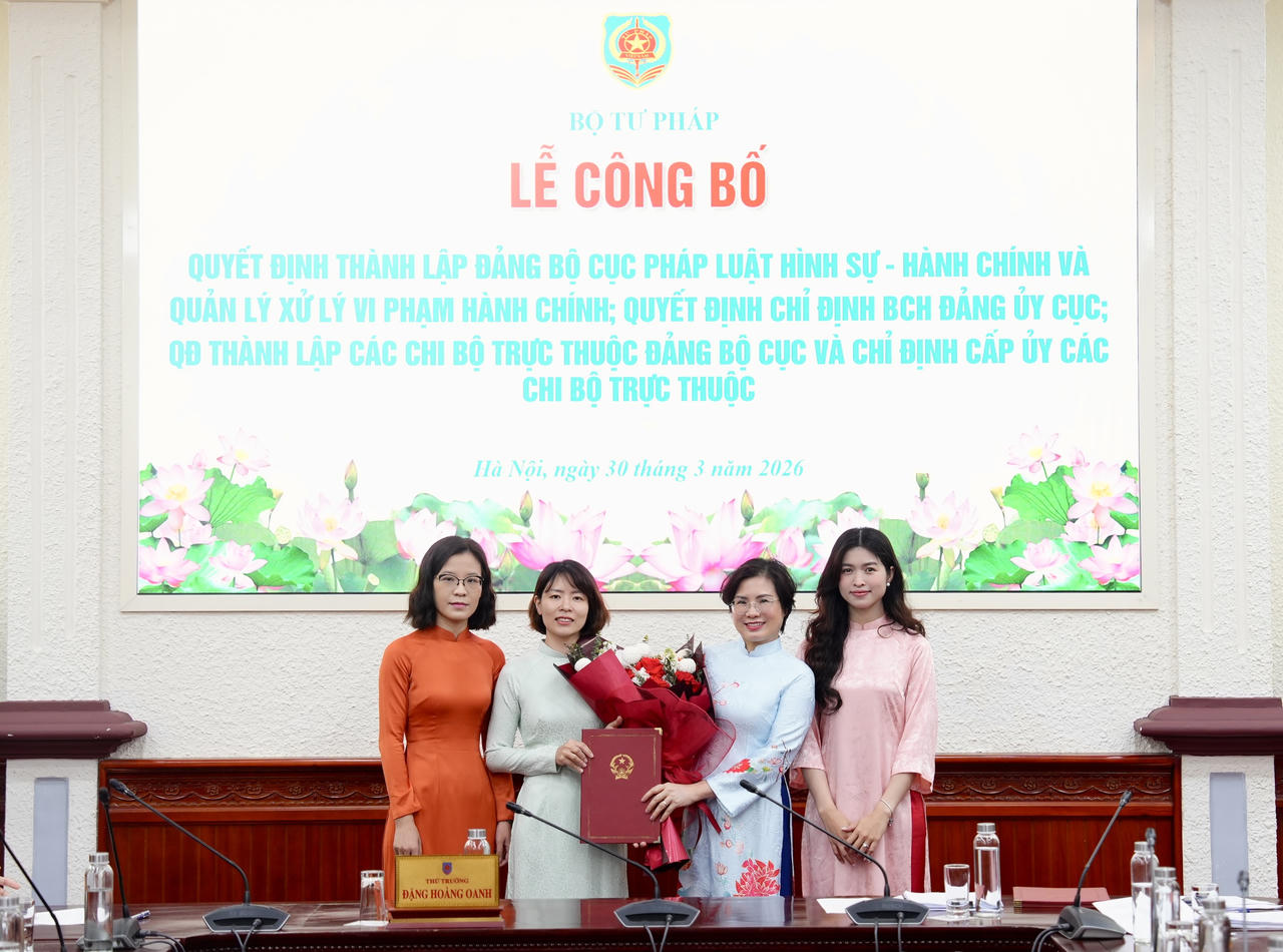 Hội nghị công bố quyết định của Đảng ủy Bộ Tư pháp về việc thành lập Đảng bộ cơ sở Cục Pháp luật hình sự - hành chính và Quản lý xử lý vi phạm hành chính; quyết định chỉ định Ban chấp hành Đảng bộ Cục. Trong đó, chỉ định đồng chí Nguyễn Thị Hạnh, Cục trưởng làm Bí thư; đồng chí Lê Thị Hòa, Phó Cục trưởng làm Phó Bí thư.
