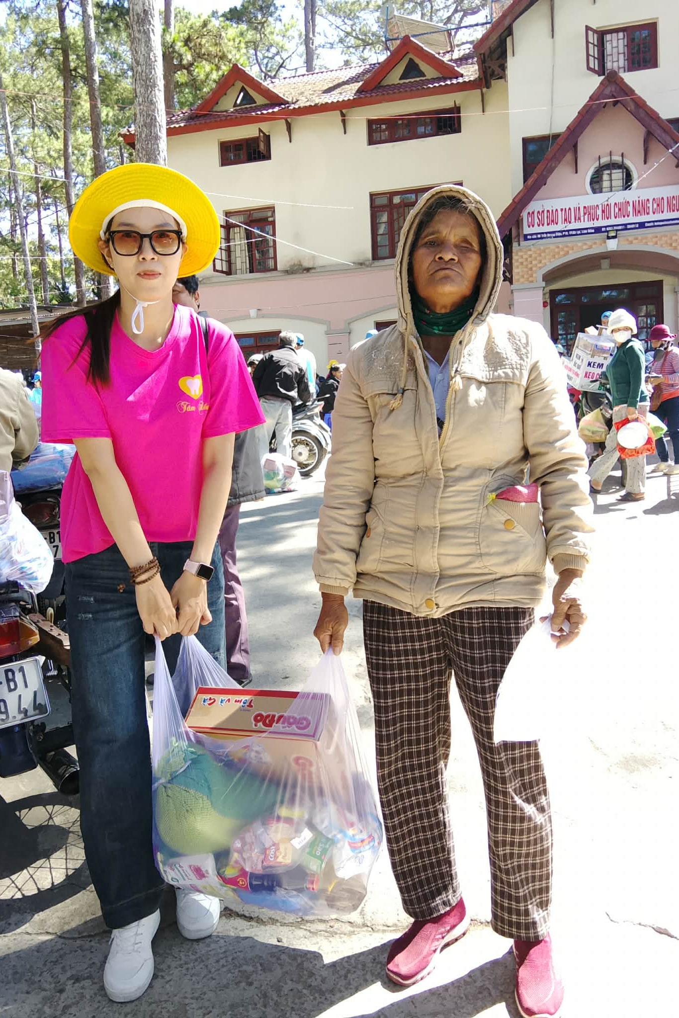 Mỗi suất quà trị giá 600.000 đồng, gồm: 5 kg gạo, 1 thùng mì tôm, bánh kẹo, dầu ăn, thuốc và 100.000 đồng tiền mặt.
