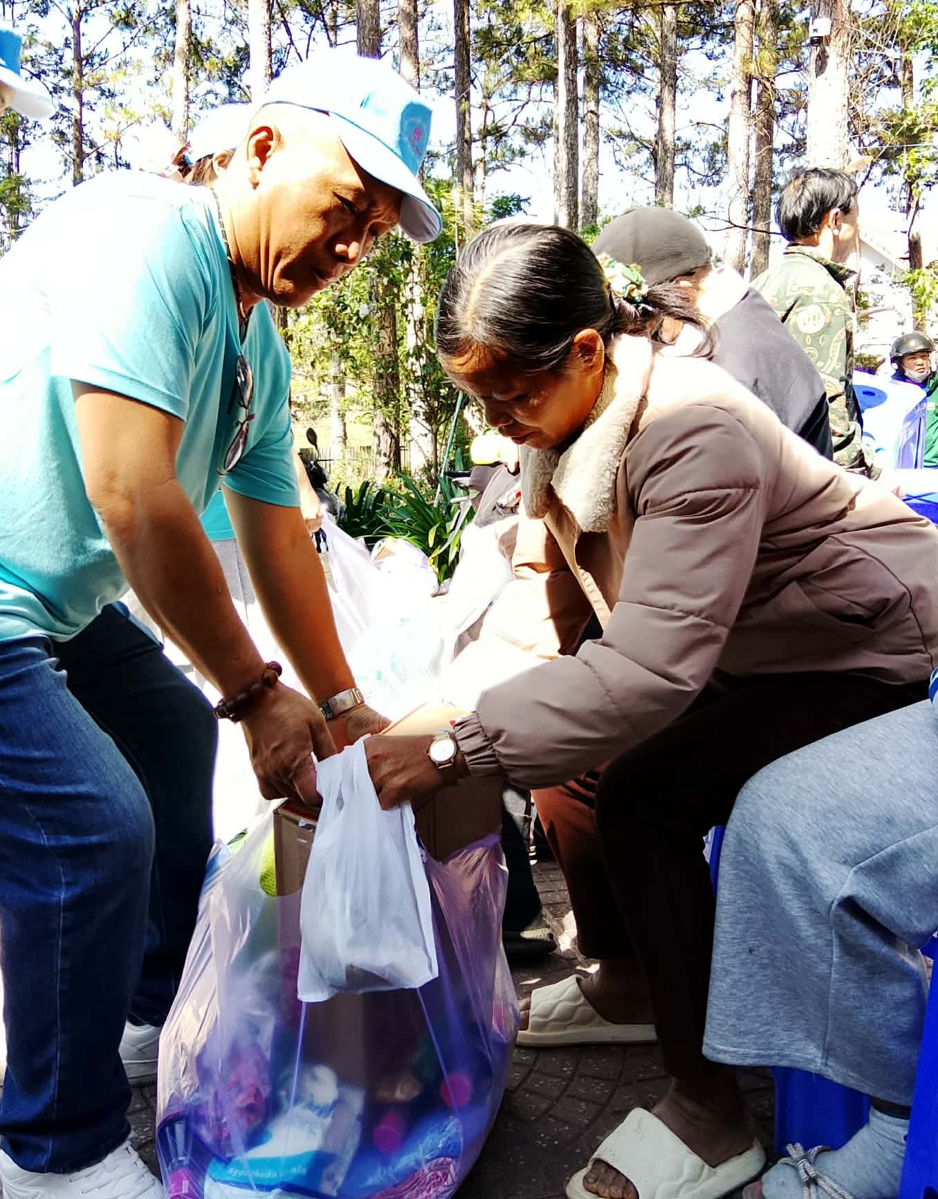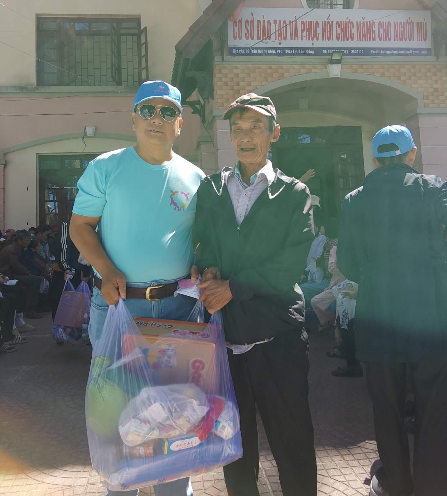 Thành viên Đoàn thiện nguyện trao phần quà cho người mù