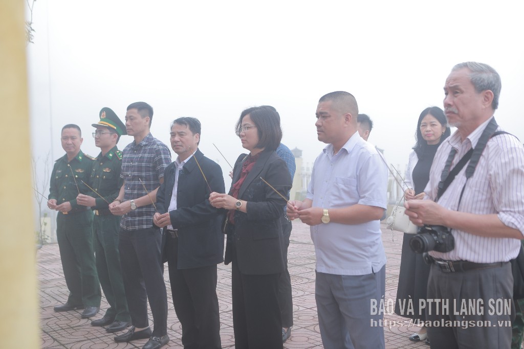 Lãnh đạo Báo và Phát thanh, Truyền hình Lạng Sơn dâng hương tại bia tưởng niệm liệt sĩ tại điểm cao 820, xã Quốc Khánh