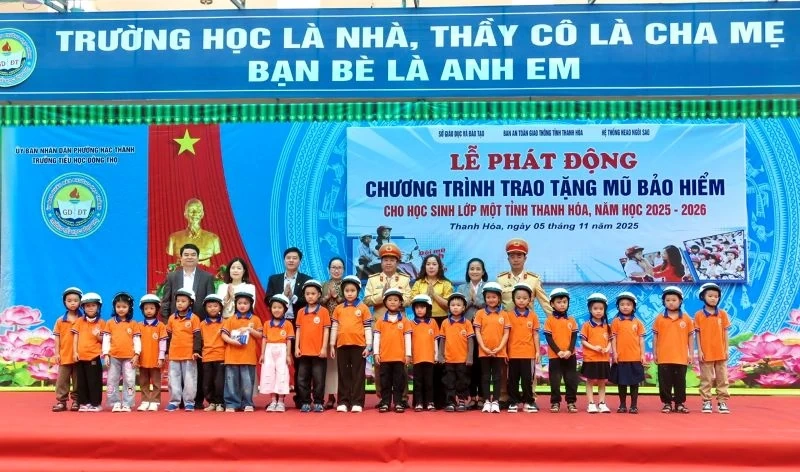 Chiều 05/11, tại Trường Tiểu học Đông Thọ, Ban An toàn giao thông (ATGT) tỉnh Thanh Hóa phối hợp với Sở Giáo dục và Đào tạo, cửa hàng Honda Ngôi sao 1 tổ chức lễ phát động chương trình trao tặng mũ bảo hiểm cho học sinh lớp 1 tỉnh Thanh Hóa, năm học 2025-2026.
