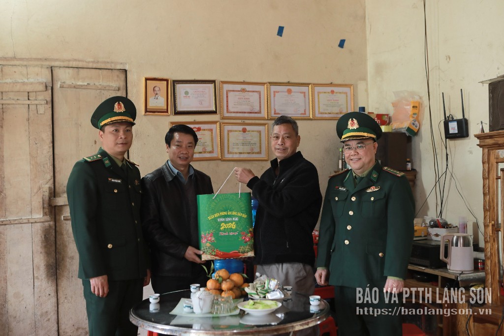 Lãnh đạo Ban Chỉ huy Bộ đội Biên phòng tỉnh và Đảng ủy xã Hoàng Văn Thụ tặng quà cho người có uy tín, gia đình chính sách trên địa bàn xã Hoàng Văn Thụ