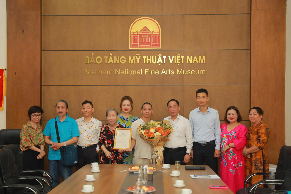 Ban Giám đốc Bảo tàng Mỹ thuật Việt Nam chụp ảnh lưu niệm với gia đình họa sĩ