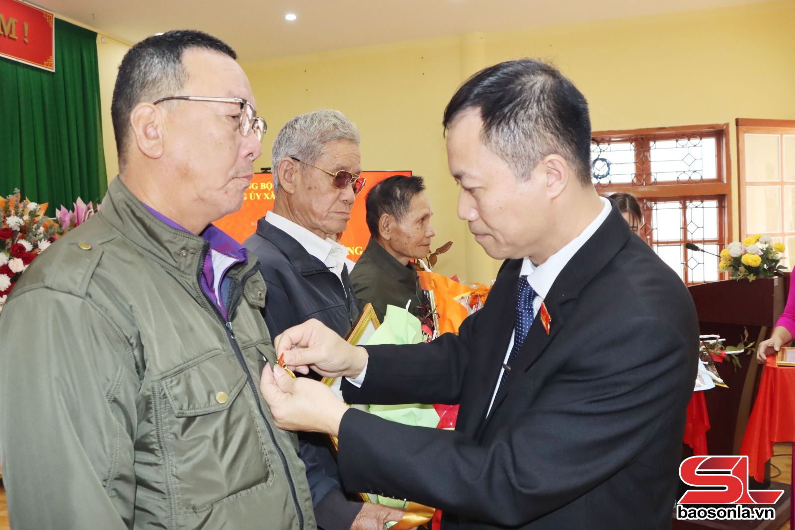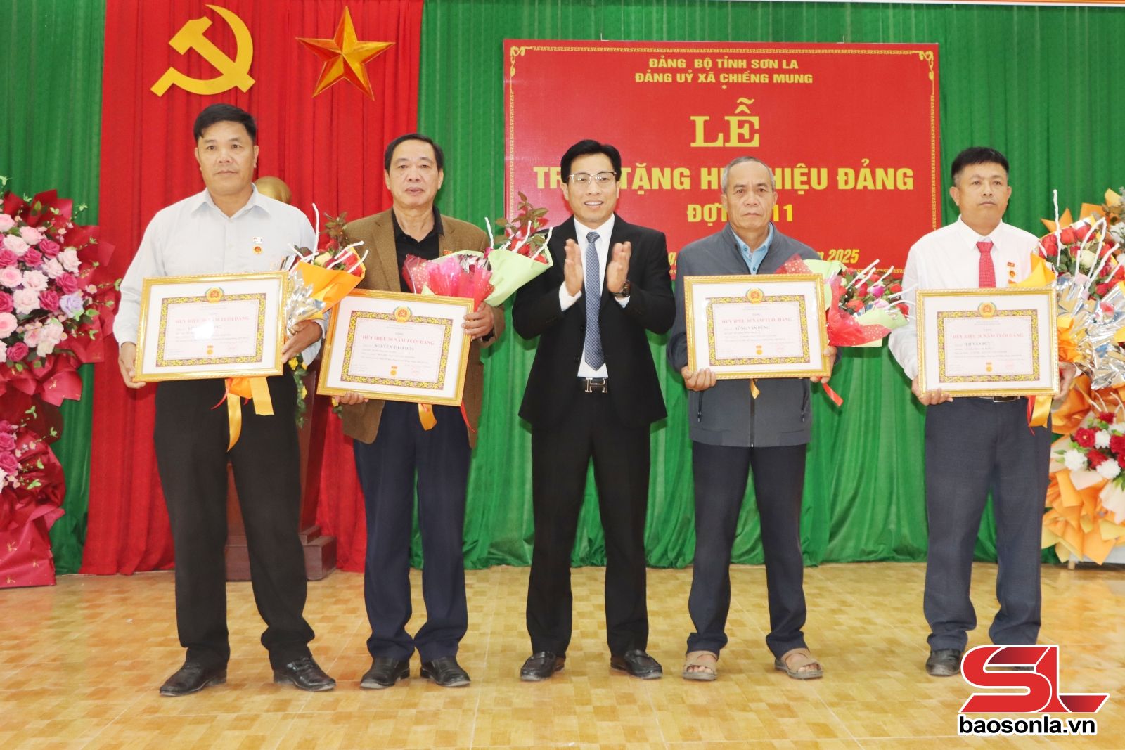 Lãnh đạo xã Chiềng Mung trao Huy hiệu 30 năm tuổi Đảng cho các đảng viên.