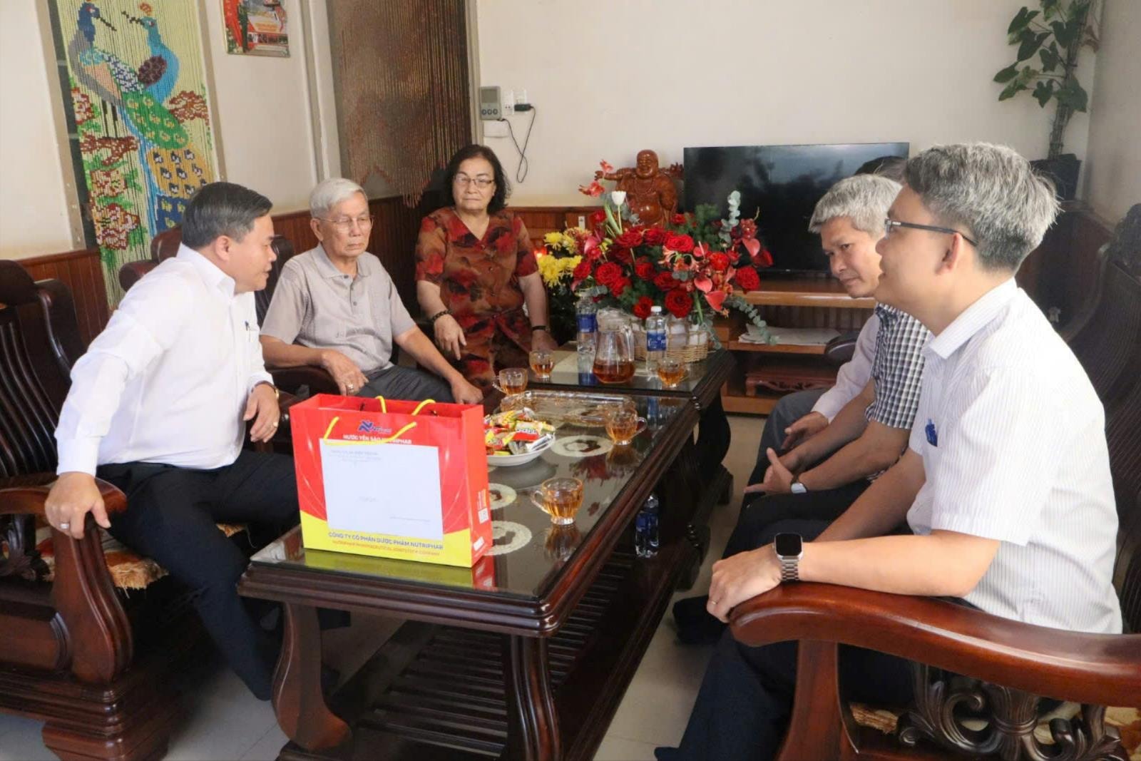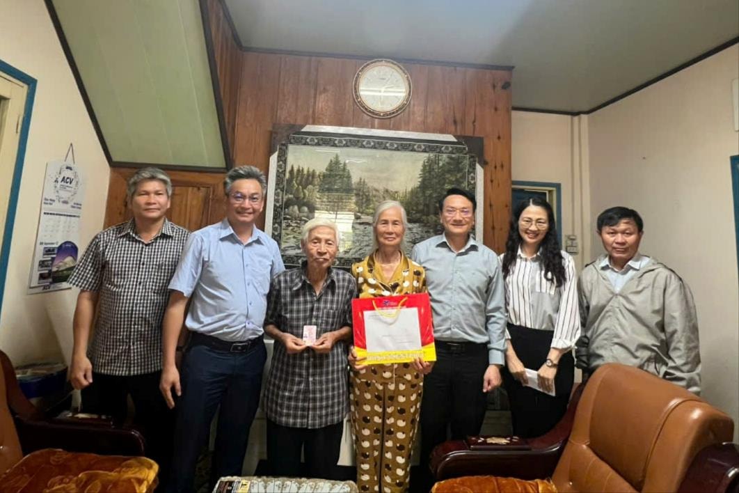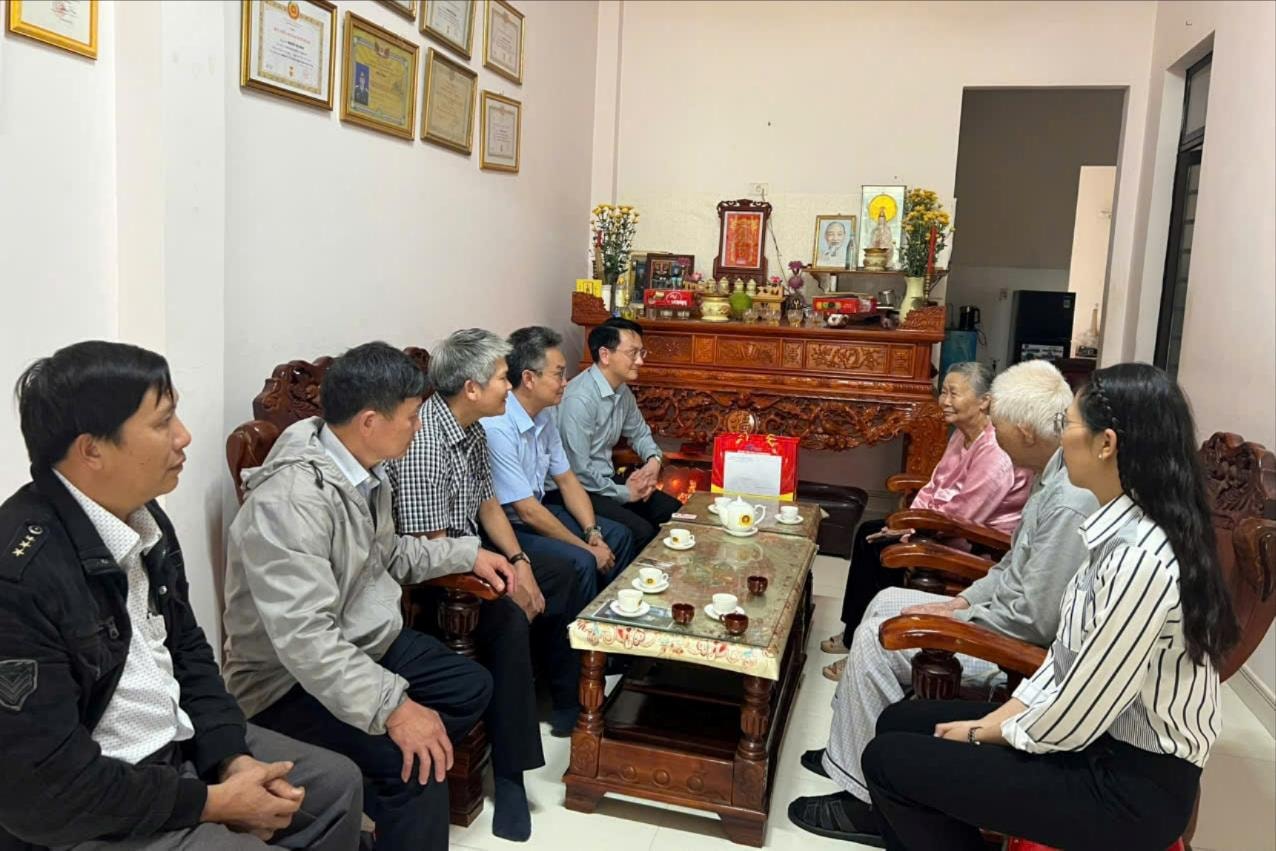 Đồng chí Hoàng Anh Tuấn, Phó Bí thư Thường trực Đảng ủy, Chủ tịch HĐND xã và đồng chí Nguyễn Quang Hiệp, Chủ tịch UBND xã, trò chuyện, thăm hỏi sức khỏe vợ chồng đảng viên Nguyễn Tấn Thưa và Nguyễn Thị Bình
