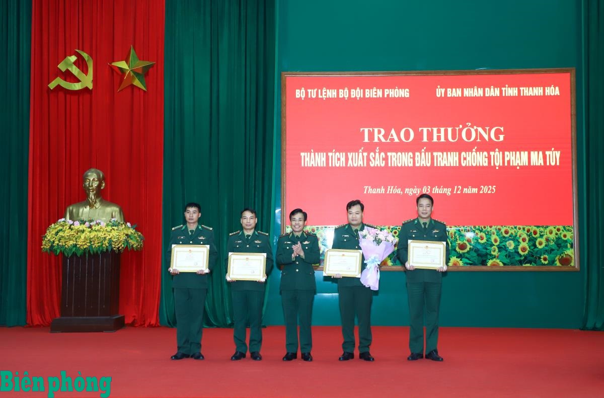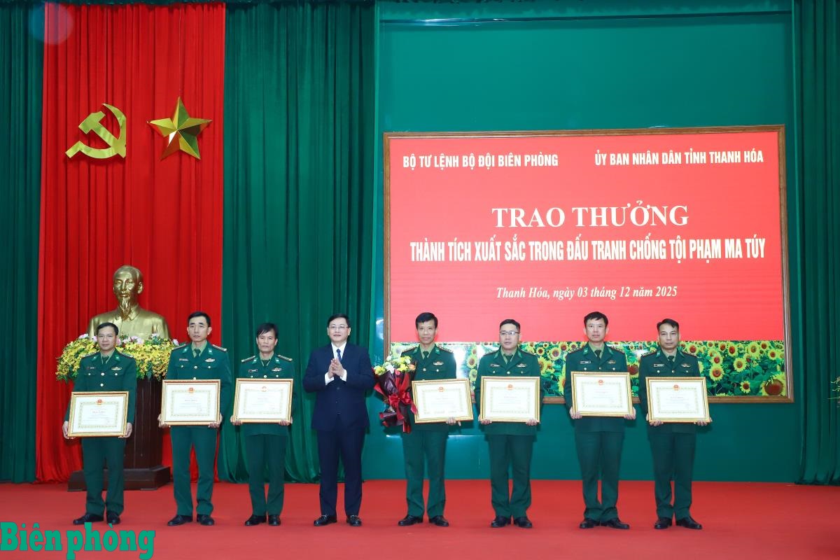 Để ghi nhận, biểu dương thành tích của các tập thể, cá nhân trong phòng, chống tội phạm ma túy, Bộ Tư lệnh BĐBP đã tặng thưởng 40 triệu đồng cho Phòng Nghiệp vụ và Đồn Biên phòng Pù Nhi, Ban Chỉ huy BĐBP tỉnh Thanh Hóa vì đã có thành tích xuất sắc trong đấu tranh chống tội phạm ma túy vào ngày 15/11/2025, bắt 2 đối tượng, thu giữ 32 bánh heroin; tặng Bằng khen của Bộ Tư lệnh BĐBP cho tập thể Đồn Biên phòng Pù Nhi và 5 cá nhân; đồng thời UBND tỉnh Thanh Hóa tặng Bằng khen cho 1 tập thể và 7 cá nhân thuộc BĐBP tỉnh Thanh Hóa vì đã có thành tích xuất sắc trong công tác đấu tranh phòng, chống tội phạm về ma túy và tội phạm, góp phần đảm bảo an ninh trật tự, an toàn xã hội trên địa bàn tỉnh Thanh Hóa; Ban Chỉ huy BĐBP tỉnh Thanh Hóa tặng giấy khen cho 1 tập thể và 11 cá nhân vì đã có thành tích xuất sắc trong đấu tranh với tội phạm ma túy, góp phần giữ vững an ninh chính trị, trật tự an toàn xã hội trên địa bàn khu vực biên giới.