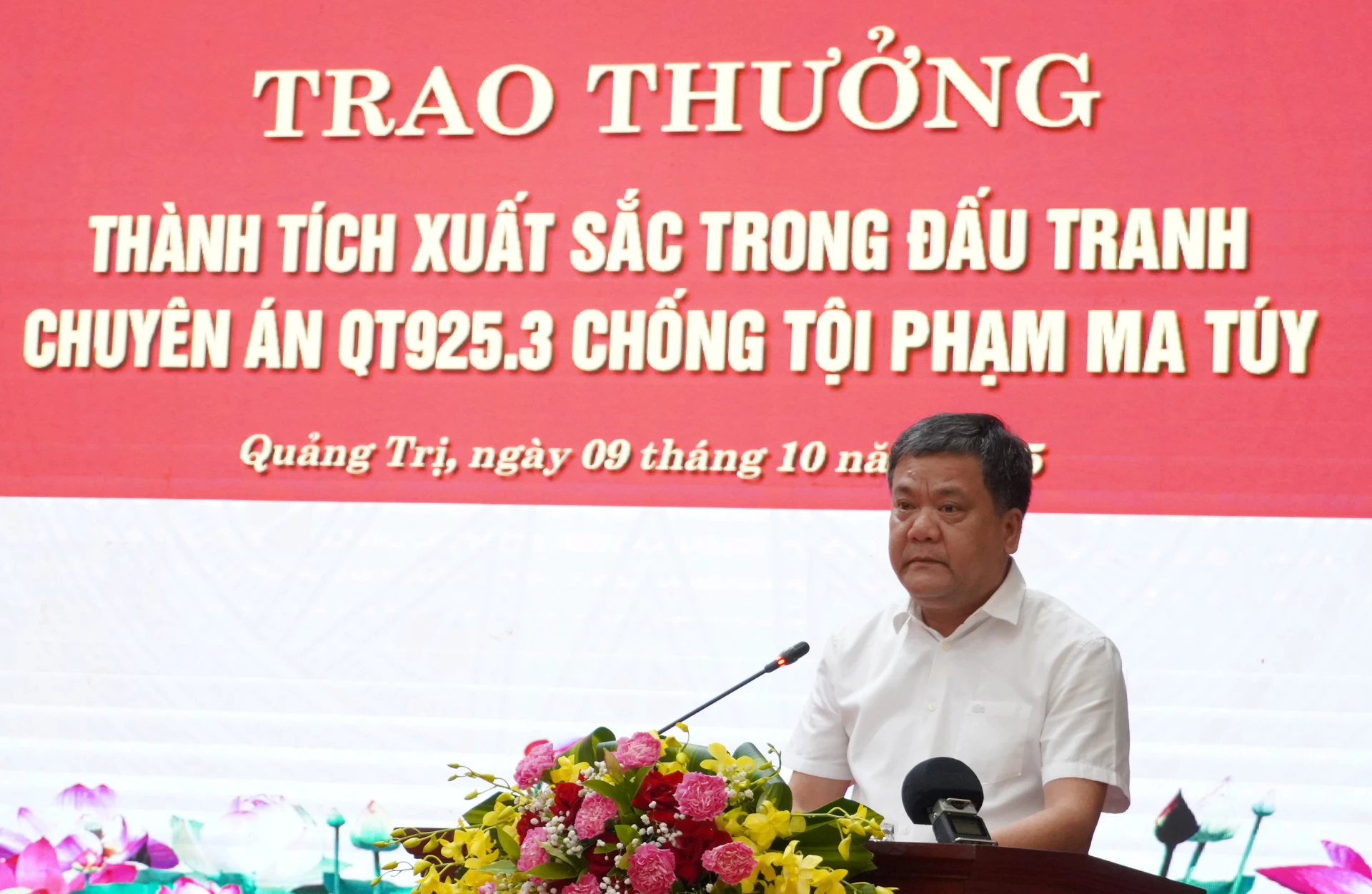 Phát biểu tại buổi trao thưởng, đồng chí Trần Phong, Phó Bí thư Tỉnh ủy, Chủ tịch UBND tỉnh chúc mừng và biểu dương thành tích đặc biệt xuất sắc của cán bộ, chiến sĩ BĐBP tỉnh và các lực lượng phối hợp trong đấu tranh, triệt phá thành công Chuyên án QT925.3.